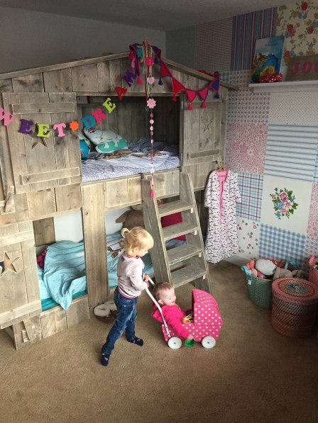 En niet alleen Jools is ontzettend blij met de nieuwe kamer; ook zusje Pippa deelt mee in de vreugde! De komende jaren mag ze heerlijk samen spelen in en om Jools haar gave bed en wanneer ze groot genoeg is kunnen ze het zelfs delen als stapelbed.