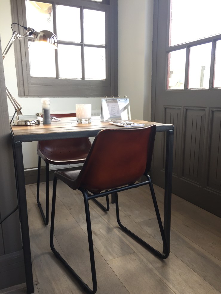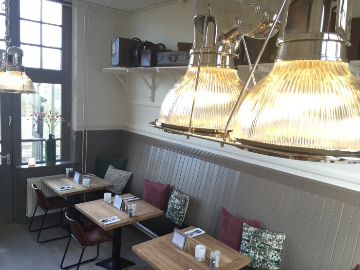 Bij binnenkomst werden we heel hartelijk ontvangen door Celeste, de gastvrouw van Het TussenStation. Wij kennen haar via ons “stam”restaurant Langs Berg en Dal, waar zij voorheen werkte en wat van dezelfde eigenaar is. Maar dat was niet de enige reden waarom we ons gelijk op het gemak voelden. Het pand van Het TussenStation geeft een heel bijzonder en fijn gevoel dat lastig in woorden uit te drukken is. De moderne, lichte en sfeervolle inrichting in een gebouw met zo’n rijke historie (het is al meer dan 100 jaar oud) is een unieke combinatie. Je waant je echt even terug in de tijd!