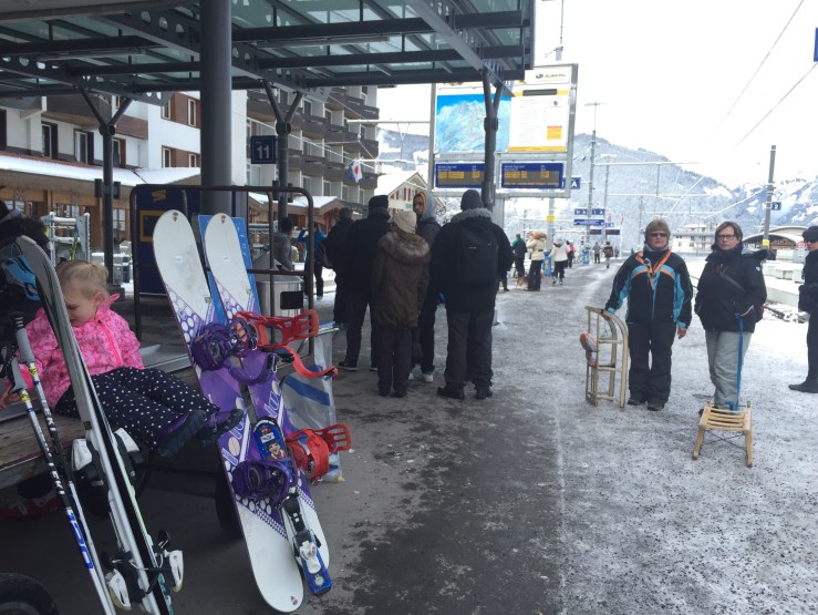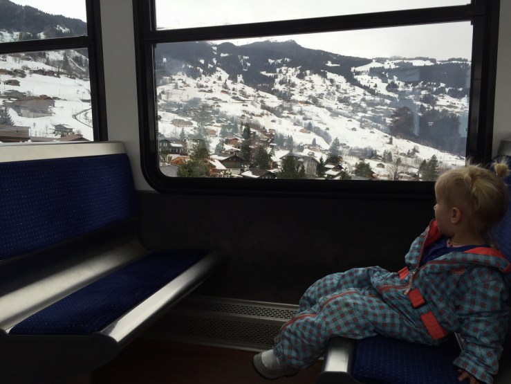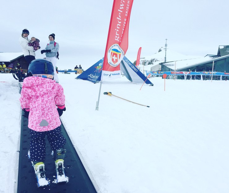 On Tuesday we went all the way up to the Scheidegg and on Wednesday we left the train in Grund to take the gondola up to Männlichen. At both places there was a great restaurant that we could use as a home base for the kids and all (read: ALLLLLL) our stuff. Männlichen was even more perfect since Grindelwald Ski School is located here so Jools was able to ski her first pizza slice. Thanks so much for all your help and care, Hans!