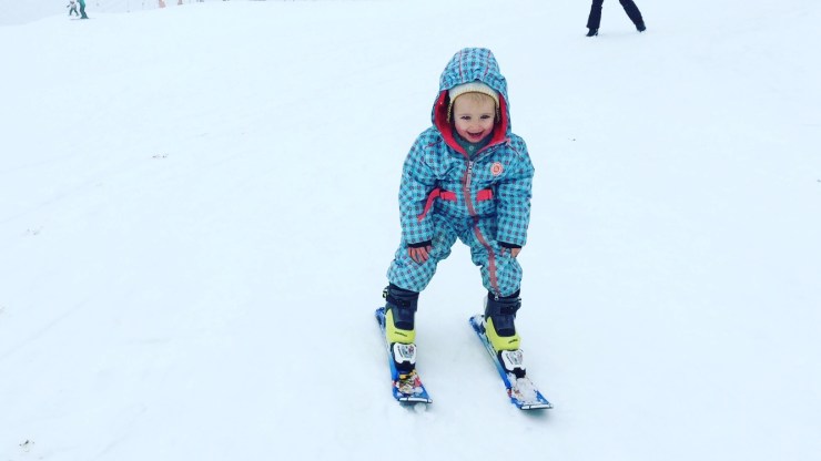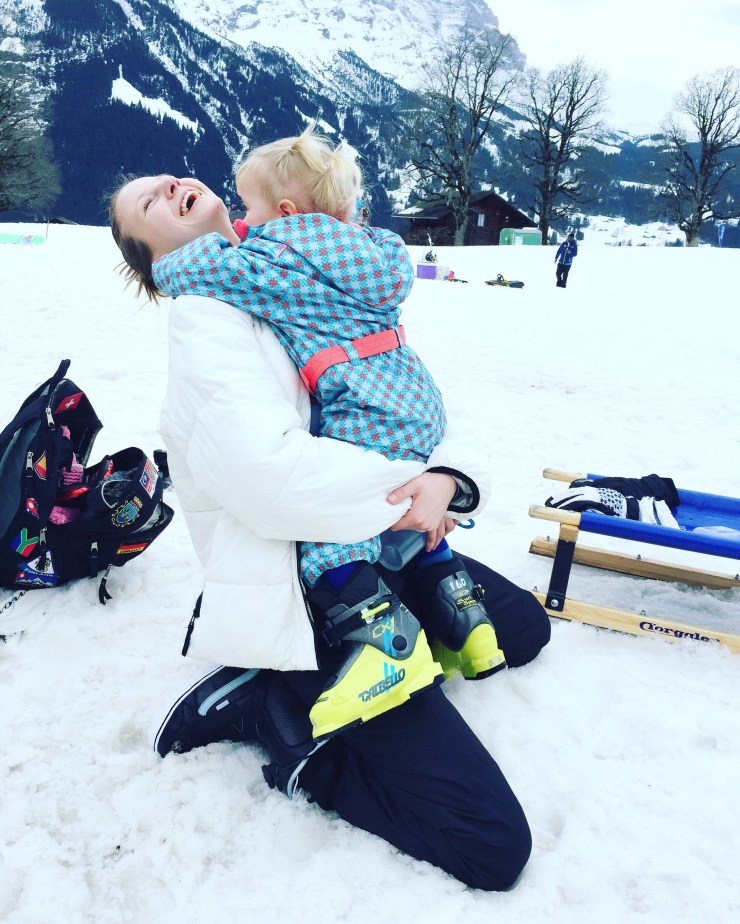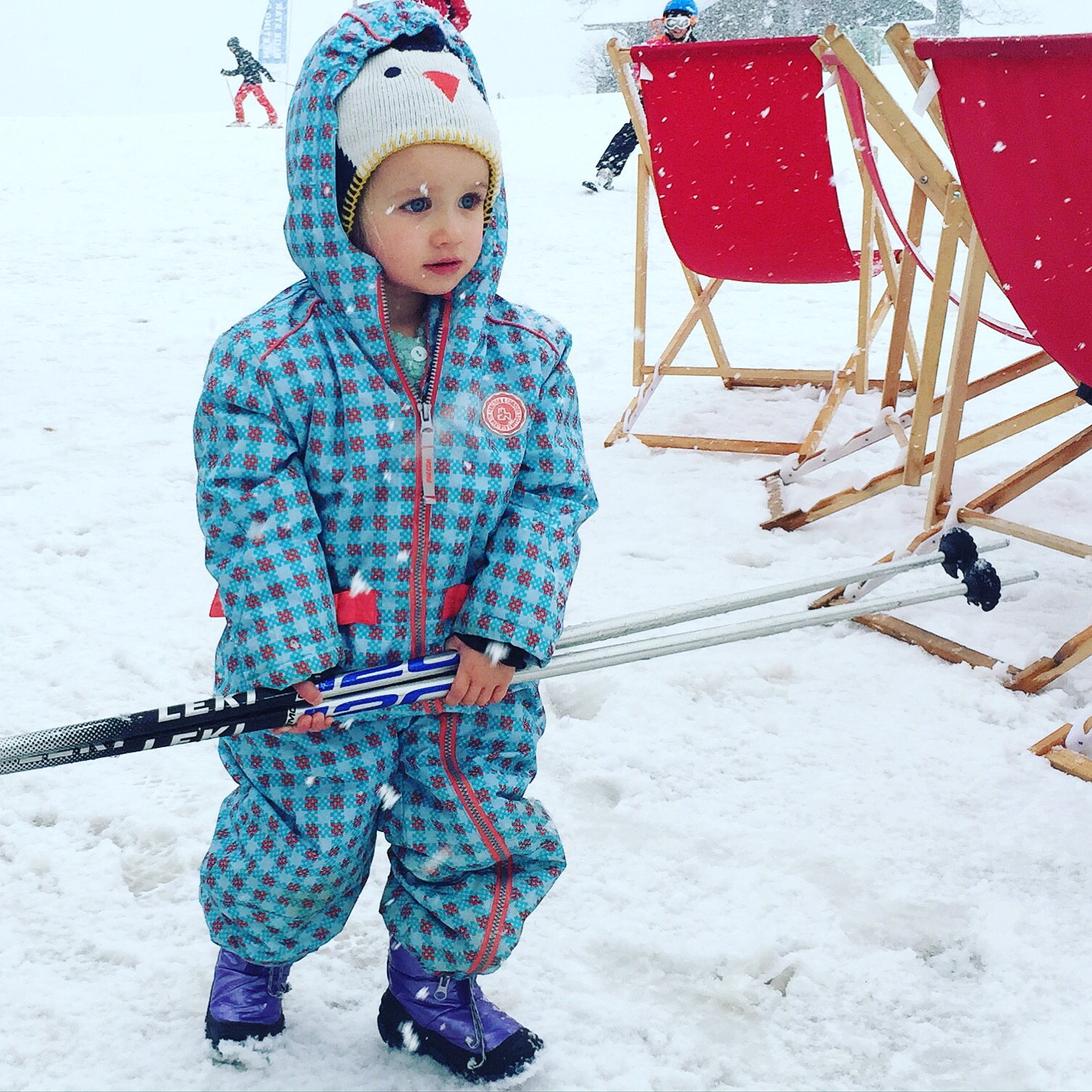 There she goes… Rocking the slopes of Grindelwald on her mini-skis!