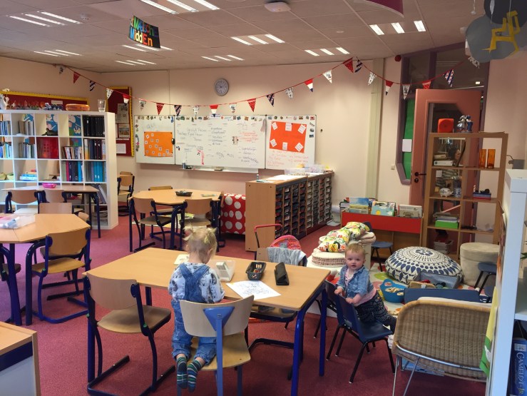 En er moet toch echt door ons allebei gewerkt worden. Gelukkig zijn er bij mij op school oudergesprekken en dus kunnen de meisjes met mij maar naar het werk. Wanneer ik gesprekken voer spelen ze in het lokaal van collega’s die op dat moment hun handjes vrij hebben. Super lief!!