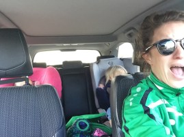 Met grote ogen keek ze me aan. En stopte warempel met huilen. Ik draaide me om. Startte de auto weer, zette de Kinderliedjes CD op volume 35 en zong (lees schreeuwde) als een valse kraai keihard mee met de tophit ‘Ik zag twee beren broodjes smeren.’ Tot nog toe hoorde was het stil achterin de auto. (huh?!?)