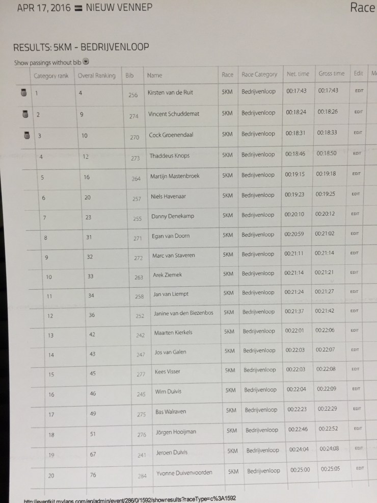 Zo last-minute als maar kan bedacht ik mij vanochtend dat het wel leuk zou zijn om het voorbeeld van vriendlief te volgen en ook mee te doen met de Venneper Run. Hij deed mee met de 5km Business Run namens zijn eigen praktijk DOE Fysiotherapie en tegelijkertijd zou de 5km prestatieloop van start gaan. Dat leek mij wel wat met dat heerlijke weer!