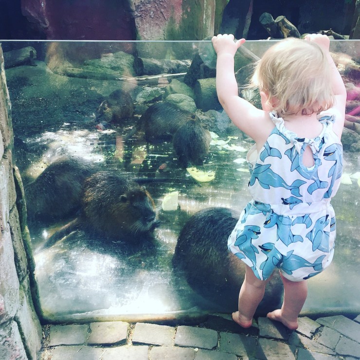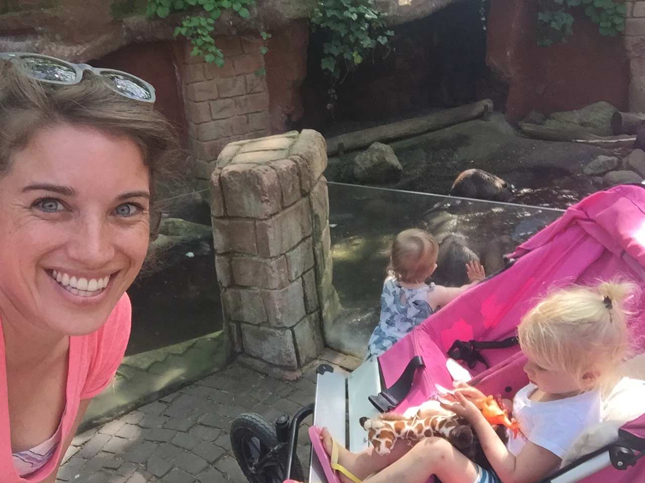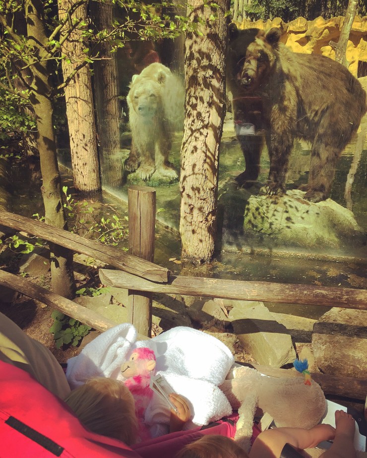 Ik liet haar kiezen wat we zouden gaan doen. Het mocht van alles zijn, zolang het maar buiten was. Ze koos de dierentuin en wilde graag naar Artisdepartis. Maarrrrr… Daar zijn we al zo vaak geweest en eens een anders dierentuin uitproberen zou ook leuk zijn. We hadden al veel goede verhalen over Dierenpark Amersfoort gehoord, dus dat ging ‘m worden. Een geluk bij een ongeluk: op een ‘gewone’ maandag gezellig naar de dierentuin met z’n drietjes. (Die arme papa Thaddeus was keihard aan het werk…)
