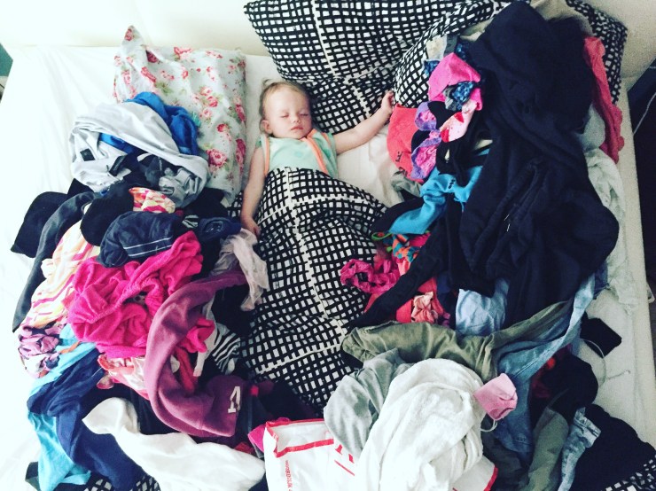 De allerliefste schoonmoeder was inmiddels bij ons thuis gearriveerd om op te passen, maar die gaat natuurlijk niet de hele tijd naast Pippa zitten tot ze wakker wordt. Want met slaapzak aan van ons hoge bed klimmen is een lastig trucje. Dusssss…. Was het eerste werkproject van de dag: Een dam bouwen om ons kleine koekie heen.