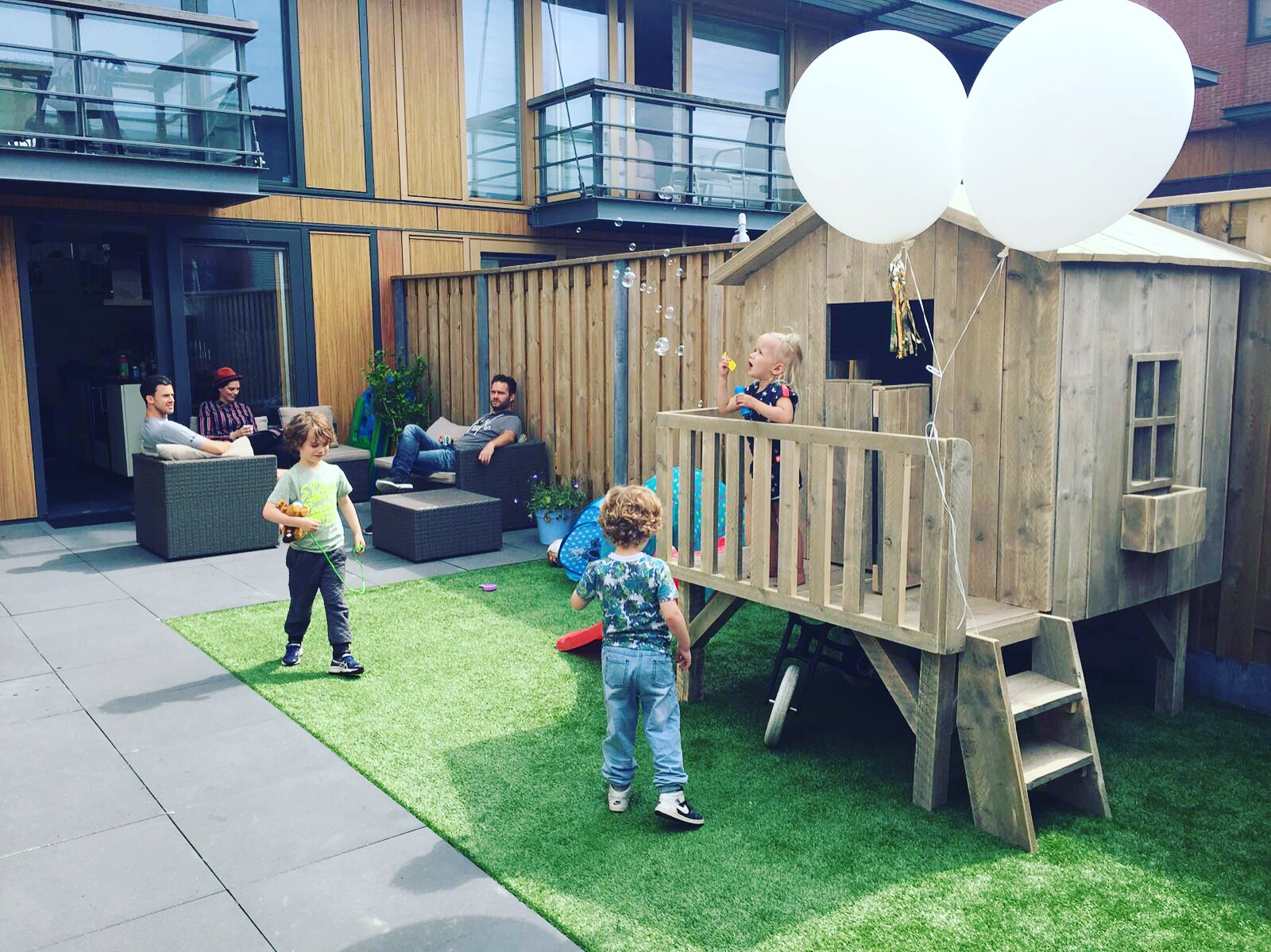 Weet je nog dat er vorige week een blog werd gepost over ons kale tuintje? Nou, ik kan je vertellen: dat ‘probleem’ is helemaal opgelost. Want wat er nu als een malle staat te shinen op het kunstgrasveldje is niets minder dan het allergloedjespikslinternieuwste product van houten meubelmakerij Special Pink. Genaamd: Speelhuisje Nelly!