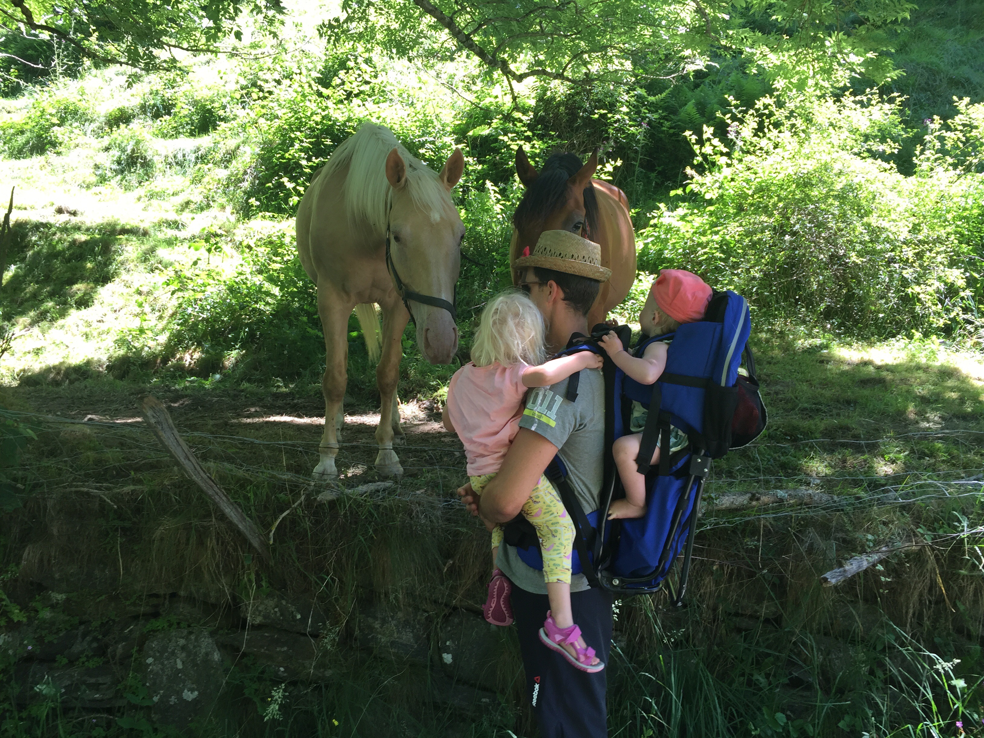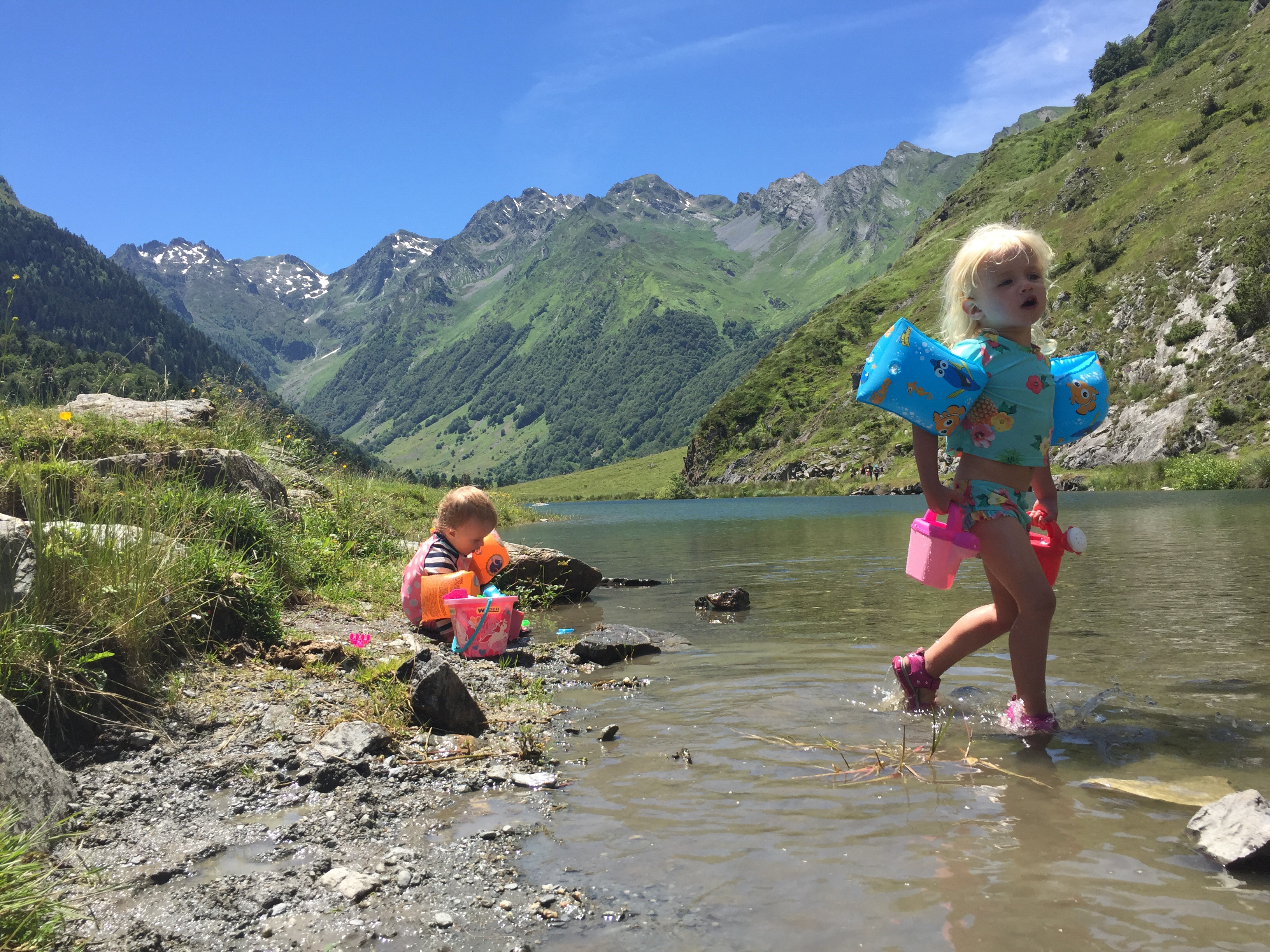 ’s Middags zijn we aan de wandel gegaan. 6 km heen en 6 km terug naar Lac d’Etaing. Pippa (1 jaar) heen in de rugdrager en Jools (2,5) in de buggy. Terug andersom. We dachten dat het misschien wat te ver zou zijn voor de meiden, maar ze hebben alleen maar gekletst, gezongen en geslapen. Toppers!!!