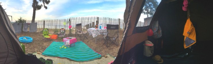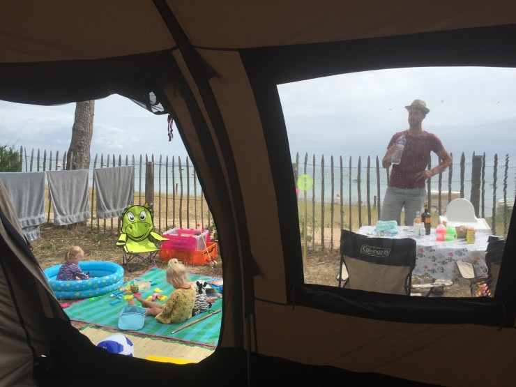 Op dit moment kamperen we op een wel heel bijzonder plekje. Dat waren de andere 3 overigens ook, maar ze zijn alle 4 zo geweldig anders: bos, wijngaard, bergen en dan nu het strand. Vanuit bijna ieder raam van de tent zie je de zee en er is alleen een hekje dat tussen ons en het strand in staat. Bizar toch?!