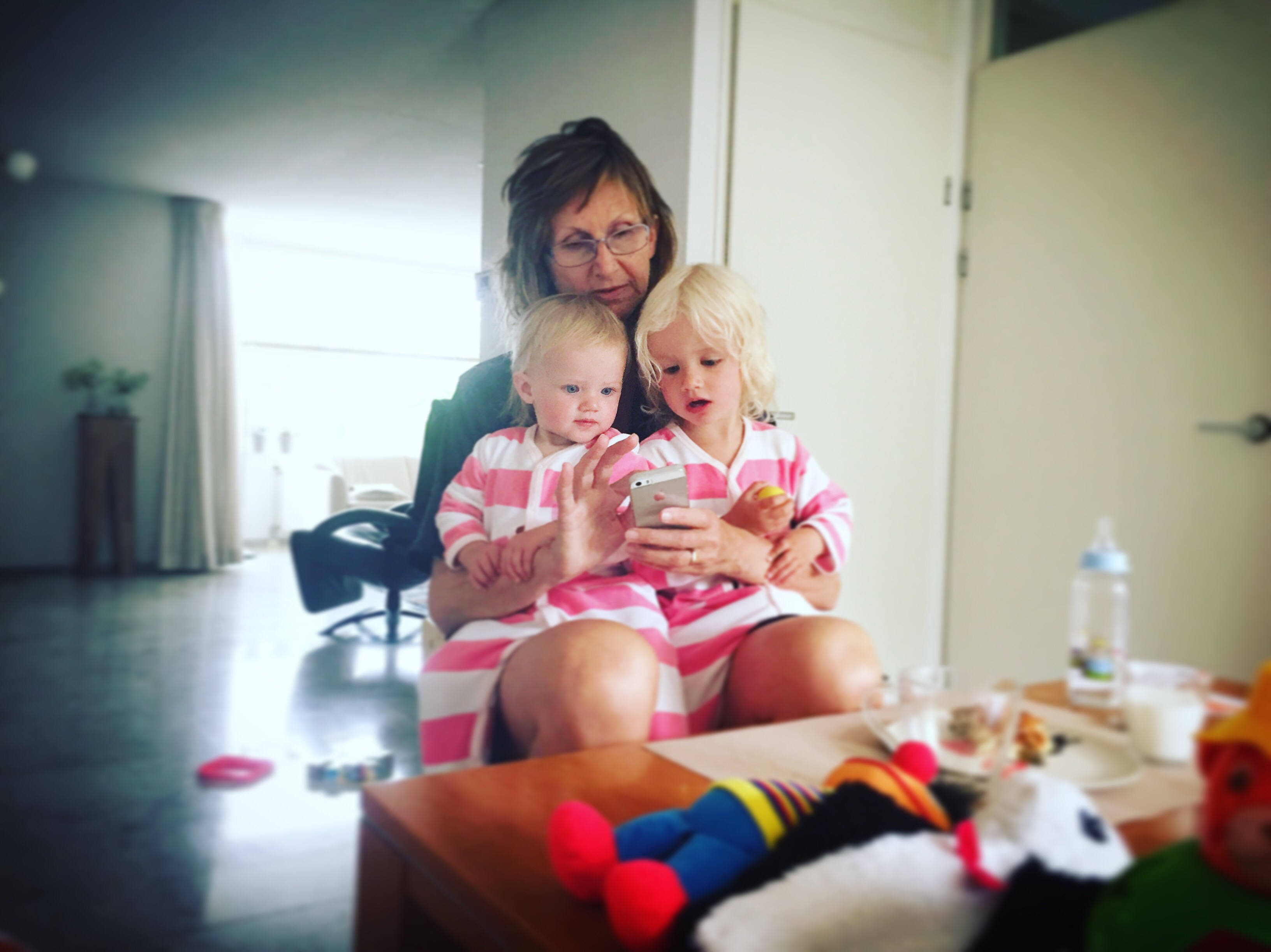 Kleinigheidje: het was nog maar 7 uur. Op een vrije zaterdagochtend. Volgens vriendlief (die zijn ouders nog steeds stukken beter kan inschatten dan ik natuurlijk) zou dit geen enkel probleem zijn om gewoon aan te bellen. Dus daar zaten ze op het bankje: papa Thaddeus, Jools & Pippa. En attendent opa & oma.