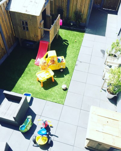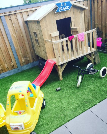 Daarna werd er goed van het zonnetje genoten in de tuin gespeeld. Helemaal bij met Speelhuisje Nelly van Special Pink! Om het te ‘verFransen’ hebben we ons souveniertje uit Pézenas aan opgehangen zodat het nu Strandhuisje (oma) Nelly is.