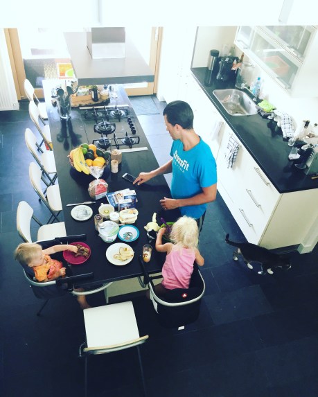 Pardoes sliep het vrouwelijke gedeelte van de fam en masse tot 11 uur uit! Papa Thaddeus niet, die wilde zijn zondagsportochtend met zijn vrienden in de duinen en op het strand niet missen en had er al een actief dagdeel opzitten toen we met z’n allen uitgebreid gingen brunchen. Zo fijn weer in onze eigen keuken!