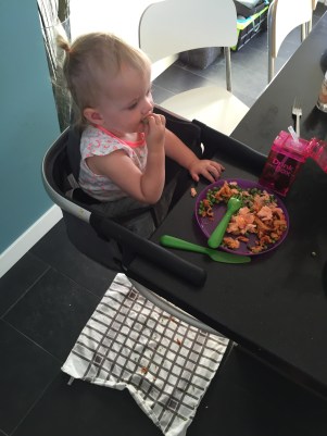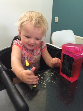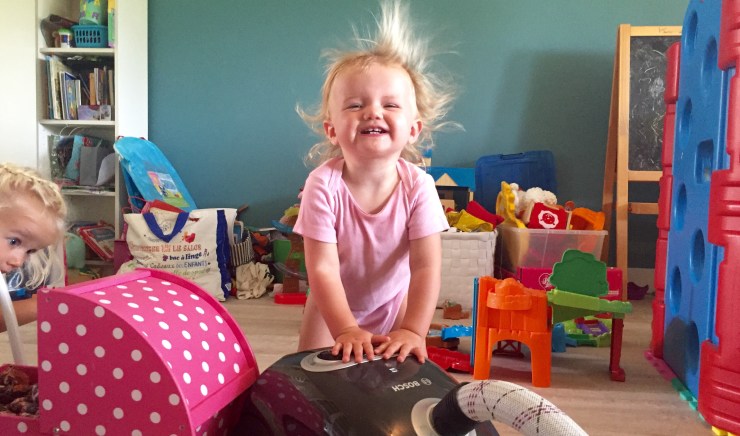 - Jezelf afvragen waarom je in vredesnaam nog stofzuigt en poetst in huis wanneer het een minuut of 10 later (op z’n max) toch weer een grote kruimel- en vlekkenbende is. Mijn mantra: “Let it go, let it go.”