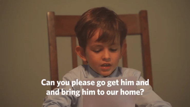 Alex told me that he wanted Omran to come live with him and his family. He wanted to share his bike, and teach him how to ride. He said his little sister would collect butterflies for him. “We can all play together,” he wrote. “We will give him a family and he will be our brother.”