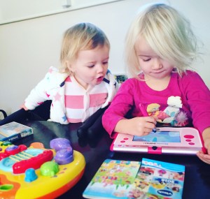 Hebben jullie meegegluurd op het Instagram account van @VTechspeelgoed? De hele dag heeft MOMspiration’s Annette flink lopen spammen met schattige, stoere en grappige foto’s van Jools & Pippa die als dolle dodo’s met hun nieuwe aanwinsten aan het pronken en spelen waren.