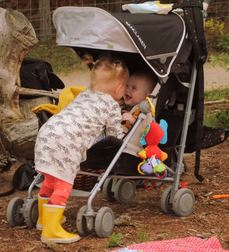 Wij hebben twee heerlijke meiden. Ze zijn dol op elkaar en spelen graag samen. Er ontstaat steeds meer interactie tussen hun en oh oh wat kan ik daarvan genieten! Die blije koppies als ze elkaar zien, dat is toch té cute! Wanneer Pippa in de box ligt dan wil Lauren heel graag bij haar in de box. Lauren geeft dan speeltjes aan of stopt de speen weer bij Pippa in haar mond. Als Pippa op de grond speelt en op haar buikje op het kleed ligt, dan gaat Lauren er vaak naast liggen. Ze kletst tegen Pippa, geeft kusjes, aait haar en gilt van plezier. Okay, dit klinkt natuurlijk wel héél erg zoet. En ik kan je vertellen, dat is NIET altijd zo natuurlijk. Soms wanneer ze samen op de grond spelen, dan kan Lauren ineens omslaan en heel lomp en ruig worden. Wanneer ik haar dan zeg dat dat niet mag en haar vertel dat ze lief moet doen en beter kan aaien, dan doet ze er nog een schepje bovenop. Arme Pippa! Dus toezicht houden tijdens hun spelen is soms nog wel nodig.