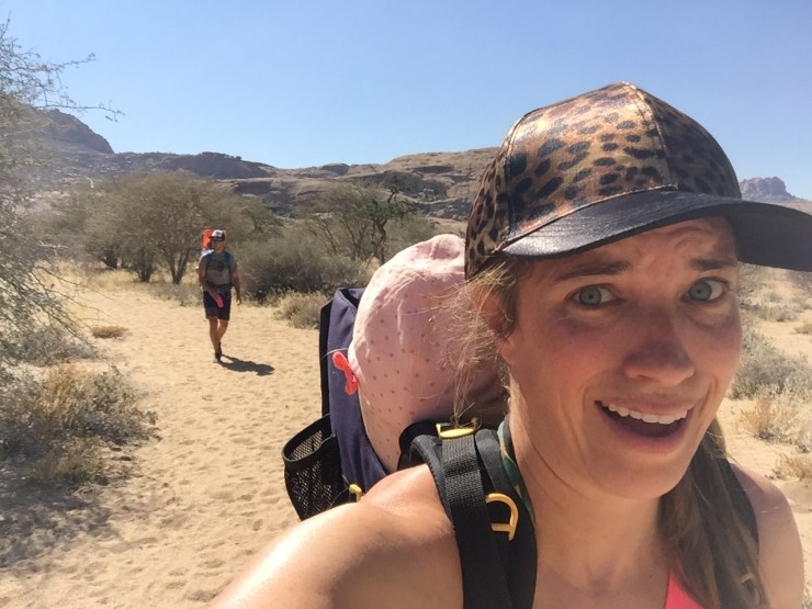 Tja, eigenlijk hadden we het natuurlijk kunnen weten. Hallo! We zijn in Namibië! Maar zoals ik al eerder schreef, realiseer je je niet altijd dat er zoveel (gevaarlijke) wilde dieren zijn, omdat je ze niet zo vaak ziet. Dus toen we nietsvermoedend aan onze hike naar Giant’s Valley begonnen, zat de sfeer er nog goed in. Kids in de rugdragers, dikke laag spf 50+, petjes op, lunchpakketjes mee en gaaaaaan….