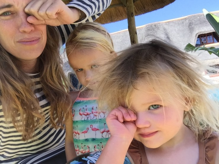 PS1: Er gaan nog veel meer dingen anders dan ‘gepland/gewild’, maar daar zijn we gelukkig allebei behoorlijk chill over. Voorbeeldje: Thaddeus ging even snel de supermarkt in om een koelbox te kopen en ik wachtte met J&P in de auto. Pippa riep dat ze moest poepen en wel NU. Geen wc in de buurt te verkennen. Dus ik rende de supermarkt in om te checken of Thaddeus bijna klaar was. Maar hij stond ergens achterin de rij. Ik nam een haastig besluit om Jools in de auto met de deur op slot te laten zitten en Pippa om het hoekje op de grens tussen stoep en stekelbosjes opgetild met de beentjes omhoog te laten poepen. Dat duurde voor m’n gevoel een uur of wat EN ondertussen ging het autoalarm snoeihard af. “Pip, ben je klaar met poepen?” “Nee.” ………….. What to do??? Dat autoalarm bleef afgaan en Pippa bleef poepen en Thaddeus stond nog steeds in de rij. Toen Pips eindelijk leeg was, renden we snel terug naar de auto en verwachtte daar een paniekerige Jools aan te treffen vanwege dat loei luide alarm. Maar nee hoor, mevrouw zat rustig in de kleermakerszit in haar stoeltje letters te schrijven in haar oefenboekje. Zie je: Alles sal reg kom en achteraf hilarisch.