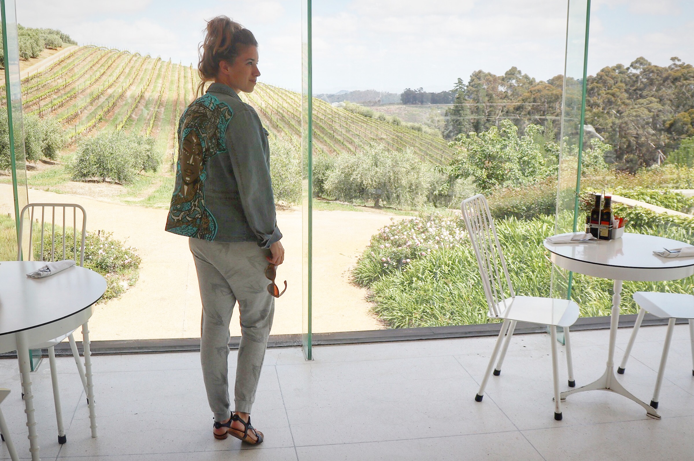 Oh, ik HOU van m’n joggingbroek. ZOVEEL. En ik dacht dus jarenlang dat het not done was om dit favo kledingstuk tijdens andere gelegenheden te dragen dan thuis op de bank of onderweg van en naar de sportschool. Maar vandaag bleek een rebelse dag te zijn: “Boeien! Ik trek m’n joggingbroek gewoon aan naar een chique lunch toko!” Hippe sandaaltjes eronder, leuk shirt erboven en ‘afgetopt’ met m’n nieuwe spijkerjas.