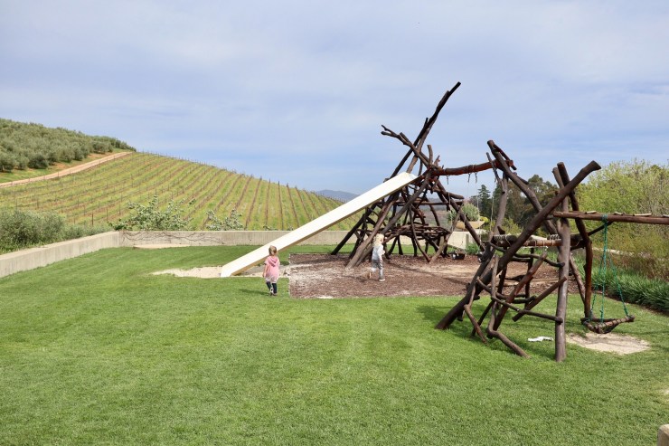 Eerst doen we samen met de meiden een rondje op/af/van/in/aan/onder alle toestellen. Daarna laten we ze zelf spelen en druipen wij langzaam af naar bijvoorbeeld een terras. Maar niet voordat we heel duidelijk afspraken hebben gemaakt over wat ze wel of niet zelf mogen doen. Ik laat het ze zelf ook nog een keer aanwijzen en herhalen wat wel en niet mag. (check check double check)