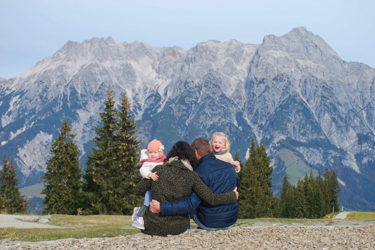 Dus daar gingen we dan. De auto volgepakt met alles wat we nodig hadden. We besloten ’s nachts te rijden. De reden? Zodat Lauren en Pippa een groot deel van de reis lekker konden slapen. En dat pakte goed uit. Rond een uurtje of half 8 werden ze wakker en besloten we ergens te gaan ontbijten en op te frissen. Daarna reden we vrolijk door. En ik vind dat dan zo leuk om het landschap te zien veranderen. Hoe verder je Duitsland in rijdt, hoe mooier het wordt. Het platteland zie je veranderen in heuvels en uiteindelijk veranderen in bergen. En ik hou zoooo van de bergen!