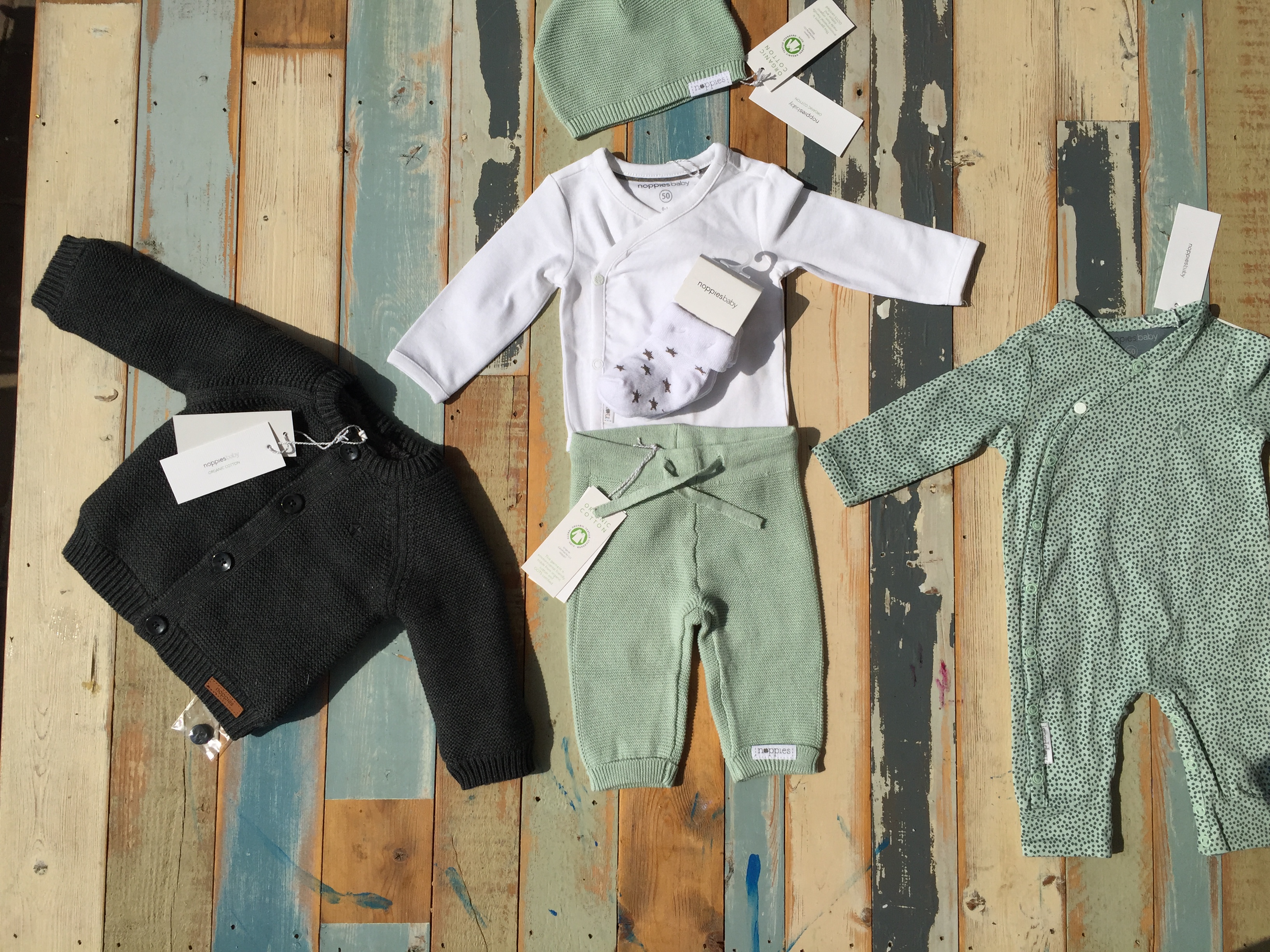 De enige dingen waar ik een beetje over na heb gedacht zijn de dingen waar ik GEK op ben en gráág over nadenk: kleding voor de baby en kleding voor mij. Daarom werd ik ook zo, zo, zo blij van een allerliefst pakketje met baby- & voedingskleding basics dat wij van Noppies mochten ontvangen. Jools & Pippa pakten het pakketje uit en je zult zien dat de appel niet ver van de boom valt: