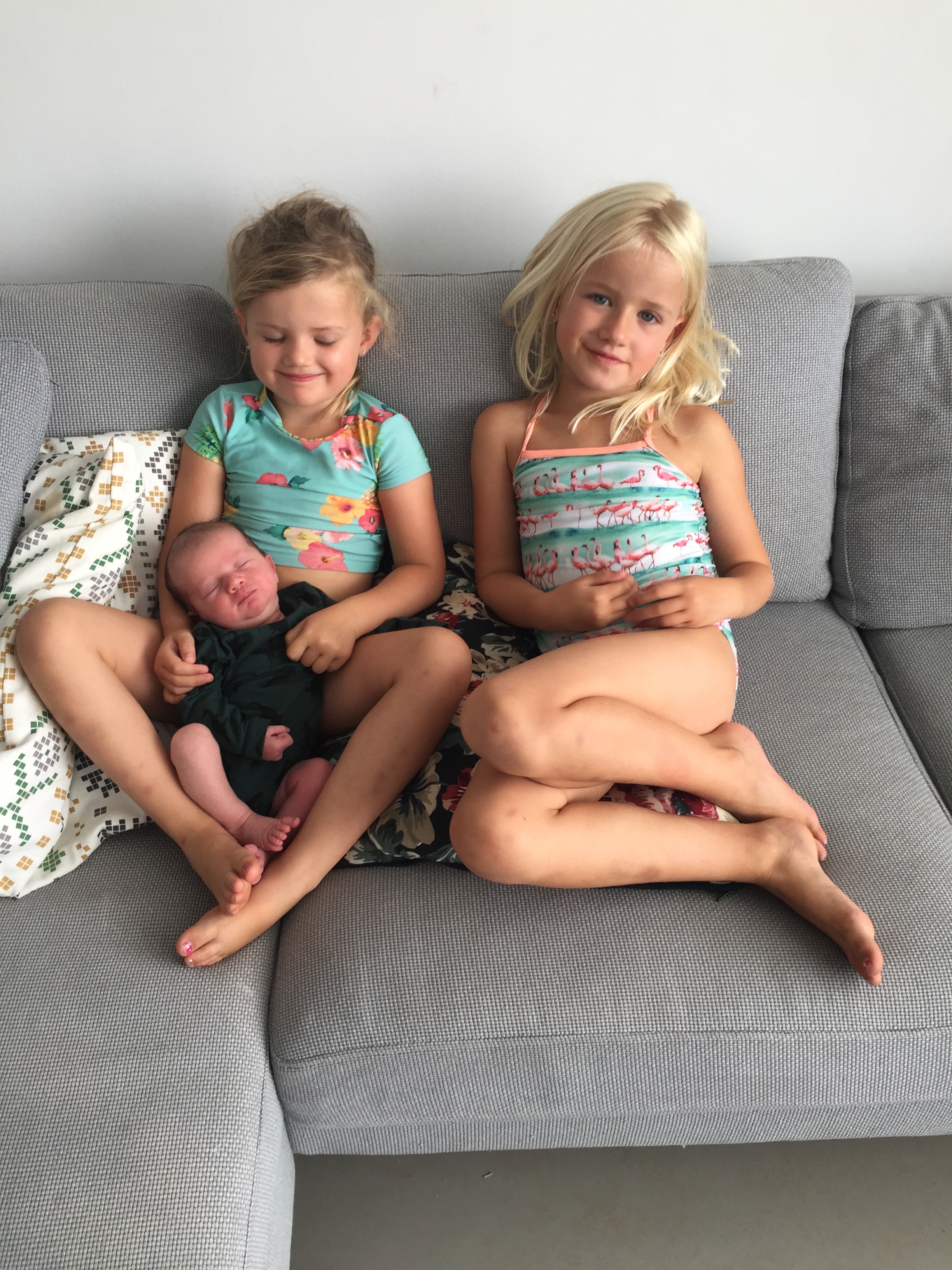 Wij hebben ervoor gekozen om de tijd en aandacht die men tijdens de kraamtijd besteedt aan kraamvisite, te besteden aan wat voor ons op nummer 1 staat: ons gezin. Die kostbare tijd en aandacht is juist nu, tijdens het vinden van een nieuwe balans, een nieuwe veilige thuisbasis, van het allergrootste belang. We zagen tijdens de eerste dagen na de geboorte van Sol, dat ieder gezinslid hiernaar snakte. We waren allemaal van de kaart. Ik zag het aan Thaddeus, maar vooral ook aan Jools & Pippa. De meisjes wisten zich de eerste dagen in het ziekenhuis en daarna thuis geen houding te geven. Zo van: Moet ik me nu anders gedragen? Hoe werkt dit? Wat betekent het voor mij dat er een baby broertje hier in huis woont die zoveel aandacht van mijn ouders opeist? Dat zijn toch nogal heftige dingen voor het koppie van een kleuter! Gelukkig helpt het heel goed om de meisjes hun gedachten te laten verwoorden. Steeds maar weer vragen naar hoe zij denken over allerlei gebeurtenissen. Pippa gaf op vrijdag aan dat ze het niet leuk vond dat er steeds allemaal mensen die ze niet of niet goed kende bij ons in huis waren. Ze doelde op de kraamzorg en de verloskundige. Mede daardoor -en gewoon omdat we verder de hulp niet echt nodig hebben- hebben we afgesproken met de kraamzorg dat ze 2 (ipv 6) uurtjes per dag bij ons langskomt.