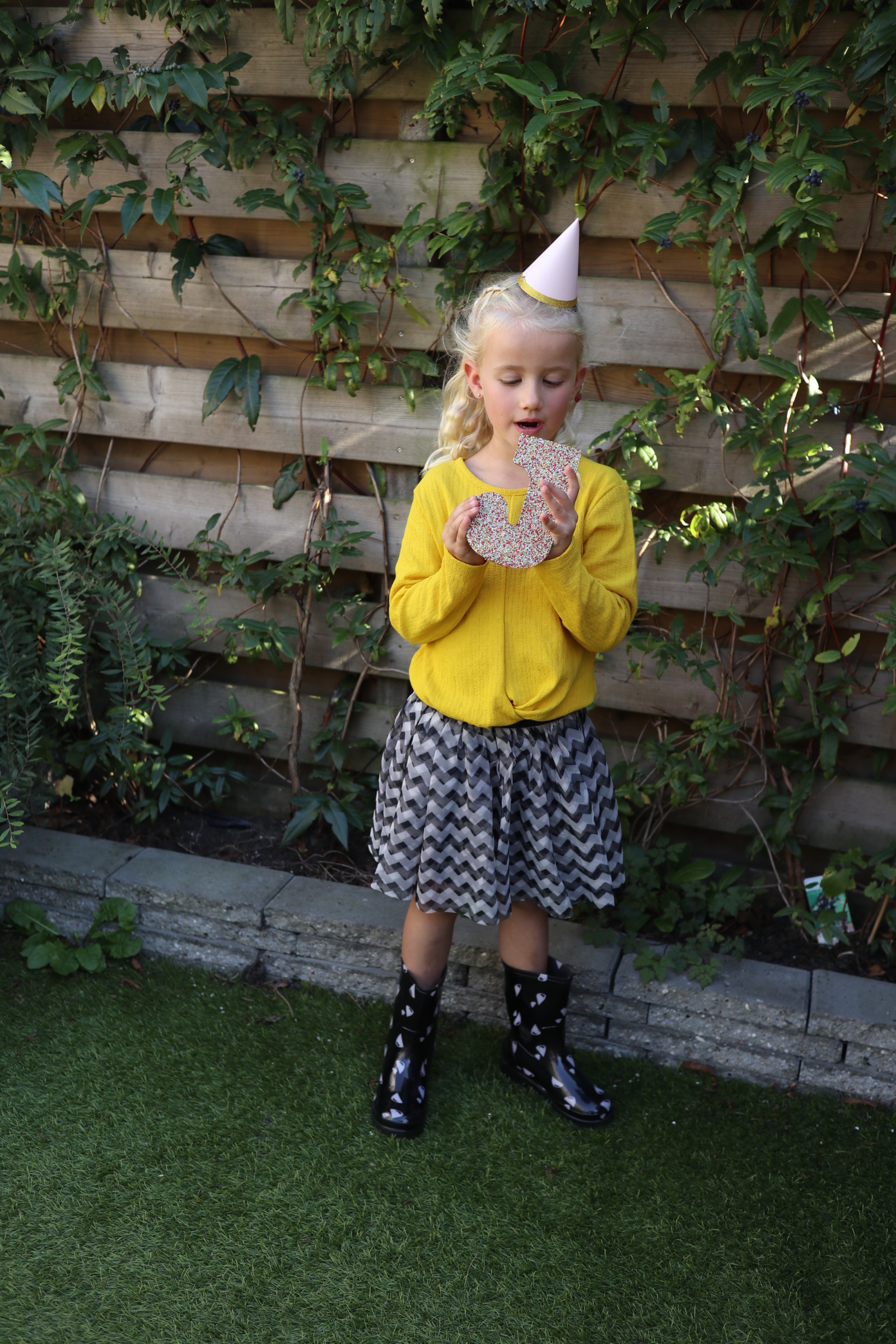 Wie ons ook maar een beetje kent, weet dat wij gek zijn op het motto ‘less is more‘. En zo geldt dat ook wat betreft verjaardagen. Helemaal wanneer het om de verjaardagen van onze kinderen gaat. Ervaring heeft ons geleerd dat verjaardagen met meer dan 20 personen (inclusief wij zelf) en een eindeloze reeks aan cadeaus voor niemand leuk is. De gasten krijgen niet de aandacht die ze verdienen, de cadeaus krijgen niet de aandacht die ze verdienen, wij als ouders racen ons in het zweet als horeca-eigenaren-voor-één-dag en de Jarig Job/Jet is compleet overprikkeld en helemaal gesloopt. Met die ervaring is ons achterhoofd, bewaakten we Jools haar 6e verjaardag scherp: we willen haar heel graag in het zonnetje zetten, maar dan wel op een manier die voor iedereen prettig is. Het allerbelangrijkste: dat Jools de hele dag straalt.