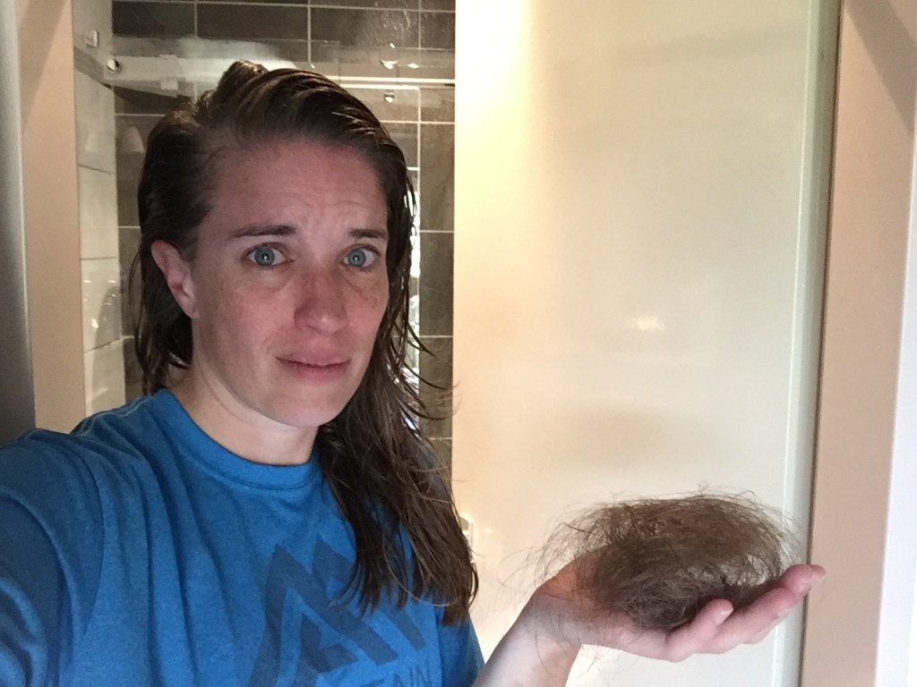 Pippa wijst naar het doucheputje. Een eigenaar van een pruikenwinkel zou er een goed bod op doen. Er ligt genoeg haar om een hoofd mee te vullen. Al weken doe ik mijn best om de aandacht niet om mijn steeds kaler wordende koppie te leggen, maar er is geen ontkennen aan. Het is heftig. Het is heel heftig. Zo heftig zelfs dat het Pippa ervan afschrikt om ooit kinderen te willen krijgen.