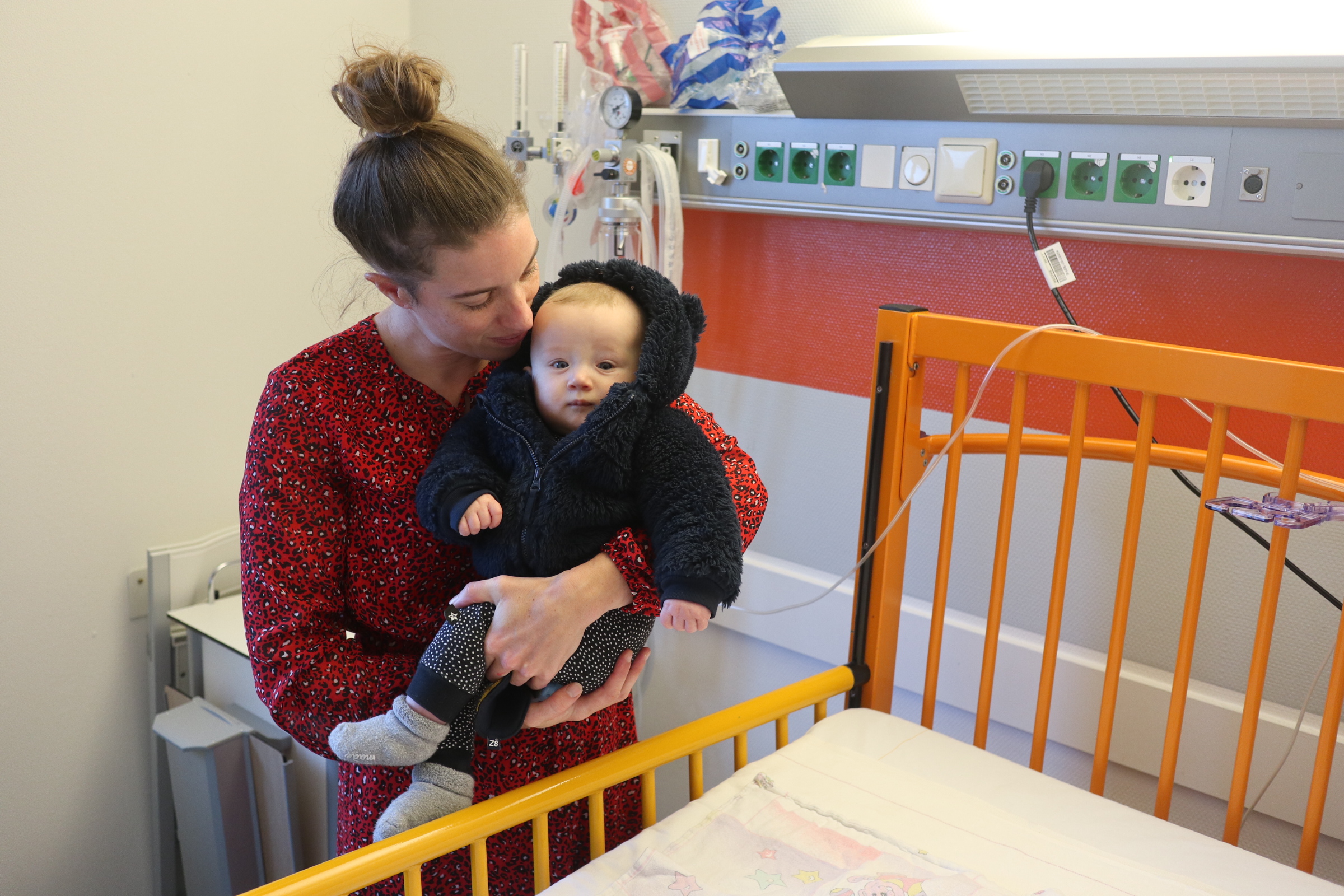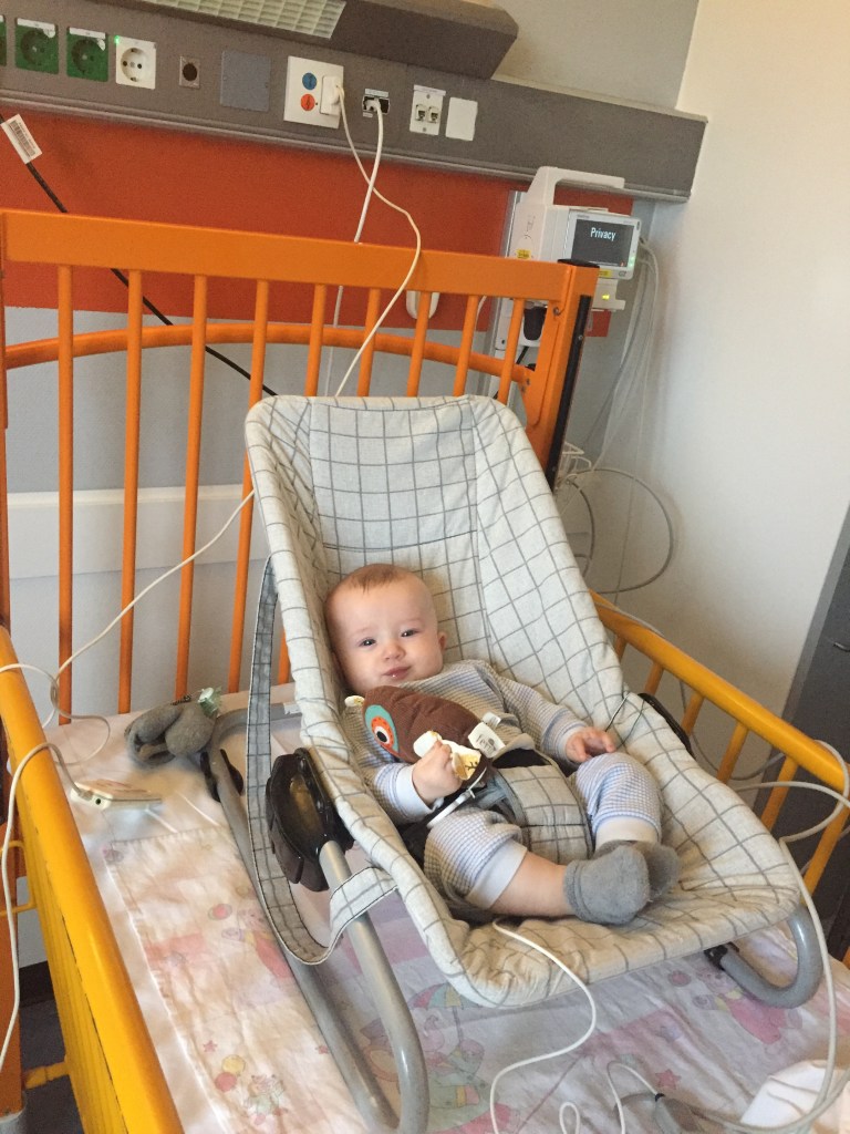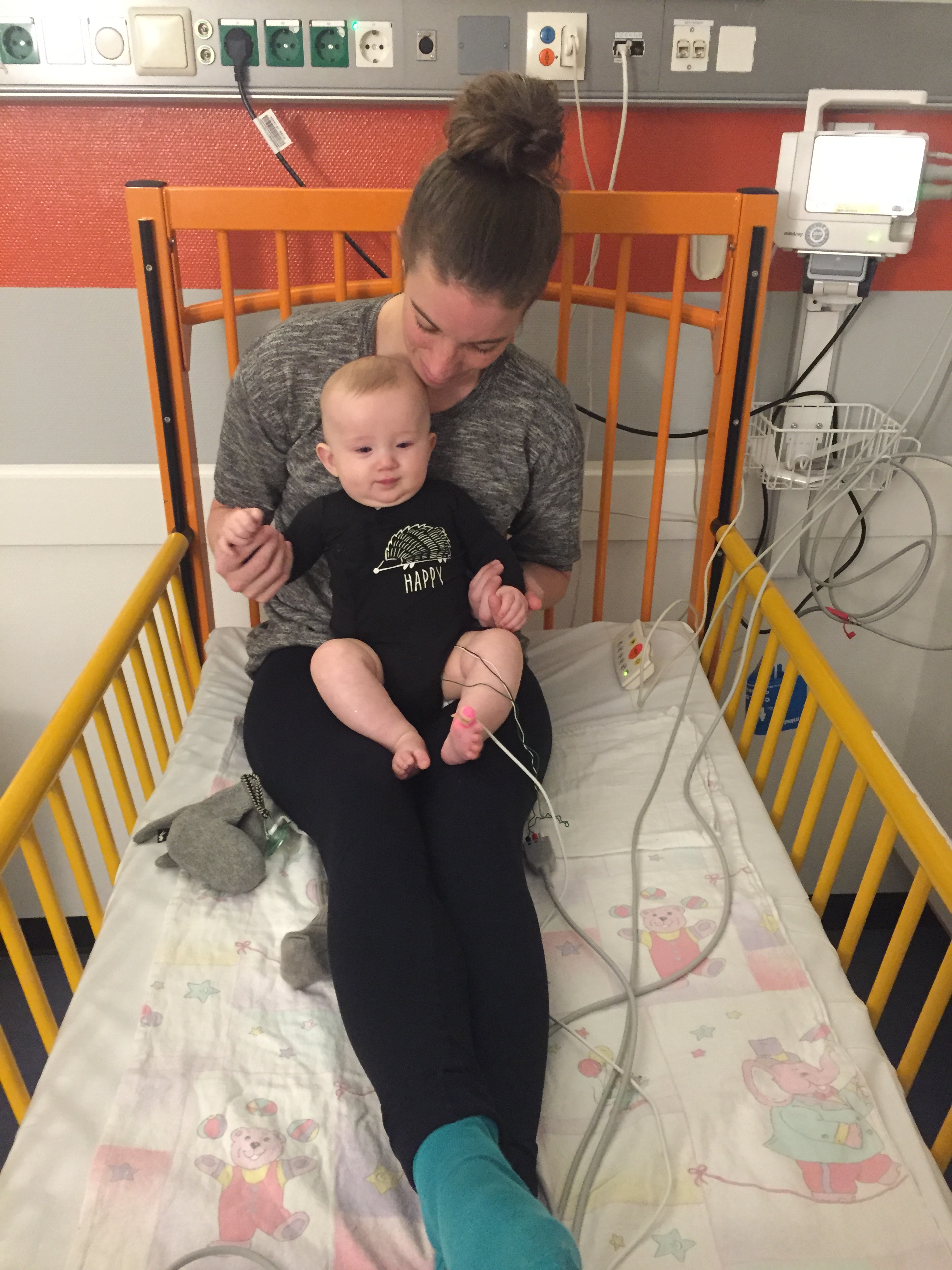 Sol werd aangesloten op een monitor die z’n hartslag, zuurstofgehalte en ademhaling konden meten. Helemaal niet handig al die snoeren, maar wel zo fijn dat hij scherp in de gaten werd gehouden. Alles wat je op dat moment wilt is iets om je aan vast te houden wat wel goed gaat. En heel dicht bij mensen in de buurt zijn die weten wat ze doen en je helpen om voor je zieke kindje te zorgen.