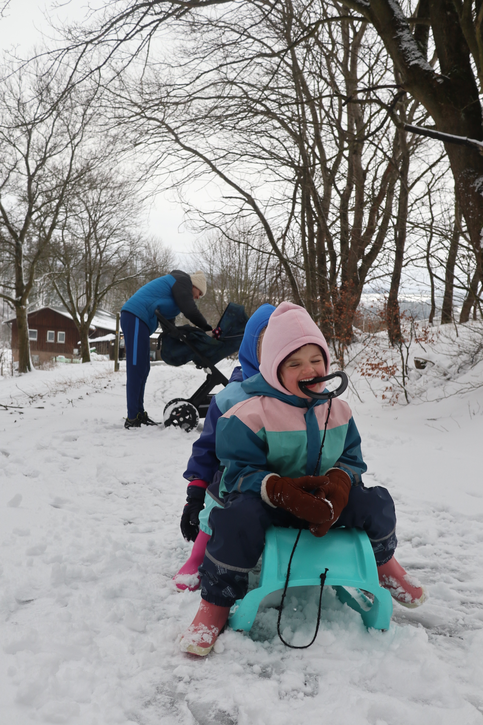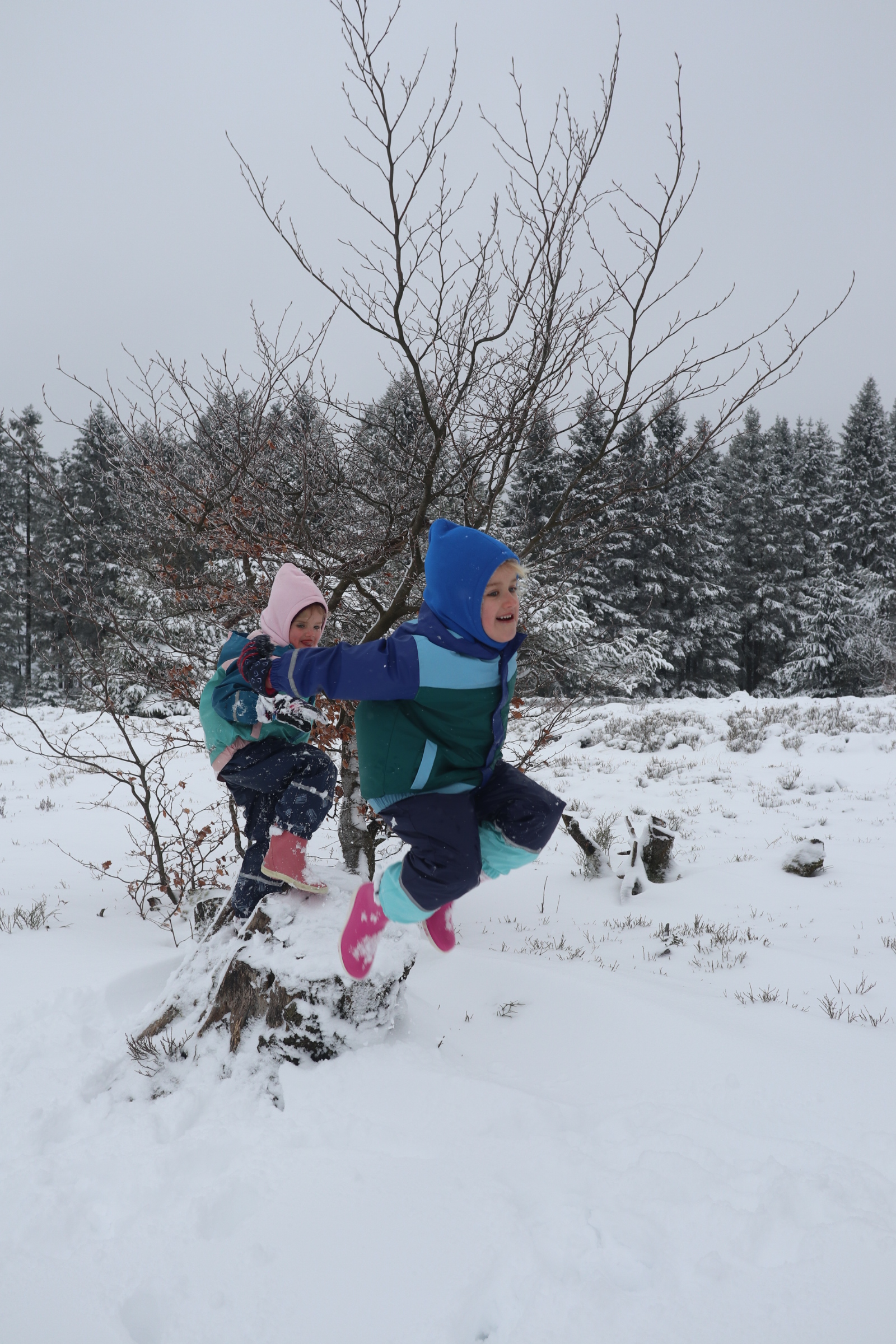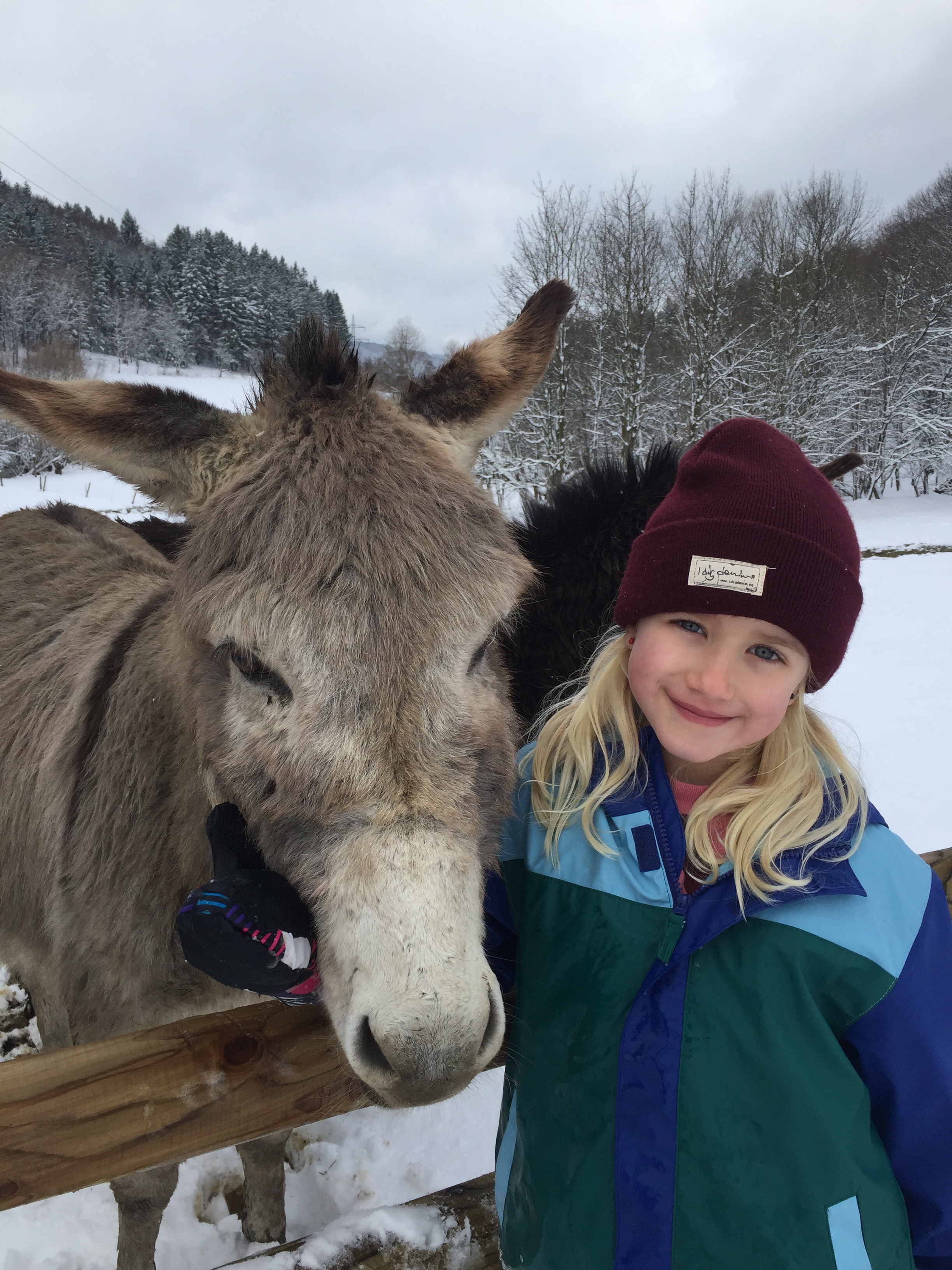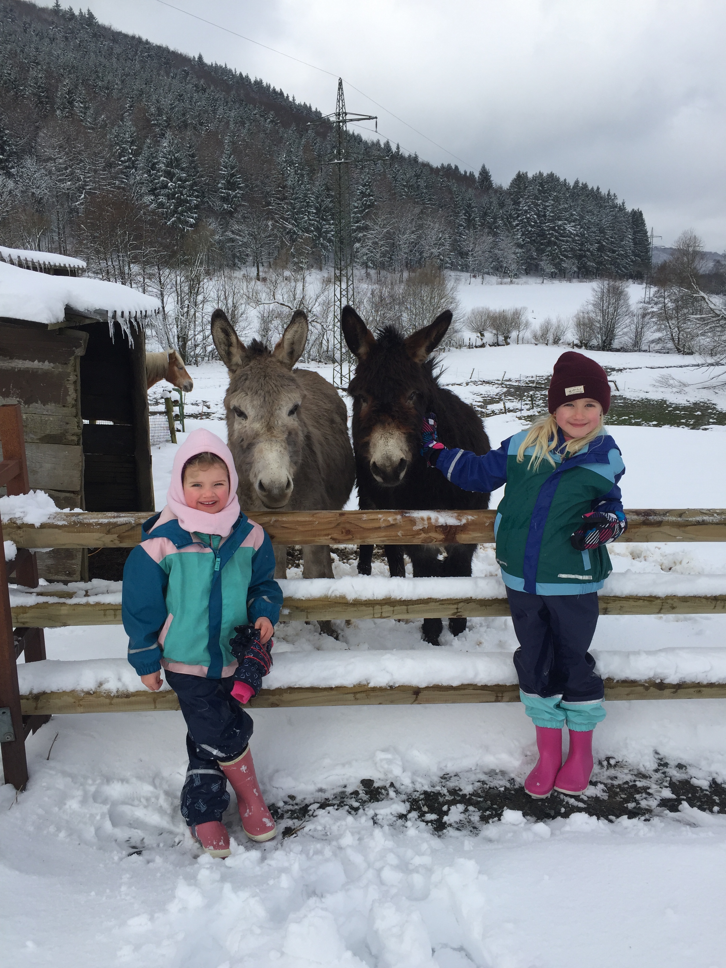 We hebben de drukte van Winterberg dit keer niet opgezocht en waanden ons alleen op de wereld op de Hochheide (waar Jools en Pippa de Sneeuwclub oprichtten: voor mensen die sneeuw het allerleukste vinden wat er is), tijdens een wandeling door Hildfeld naar de Clemensberg Hütte en rondom het meertje in Niedersfeld: de Hillebachsee (daar is een super leuke speeltuin en aan de andere kant van het bos staan ezels en paarden). Zo kneuterig, zo fijn.