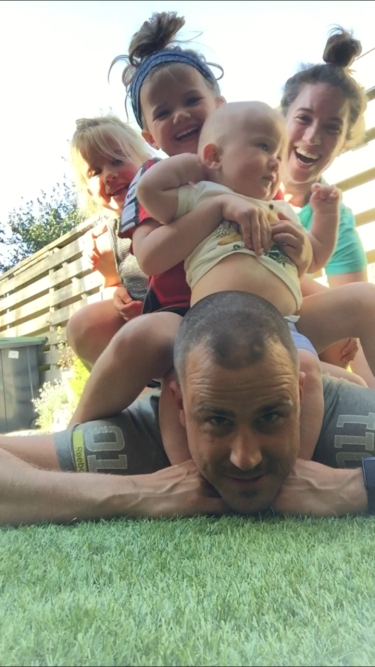 Foto 3a, B & C: k-RAAMvisite bij baby Rubí