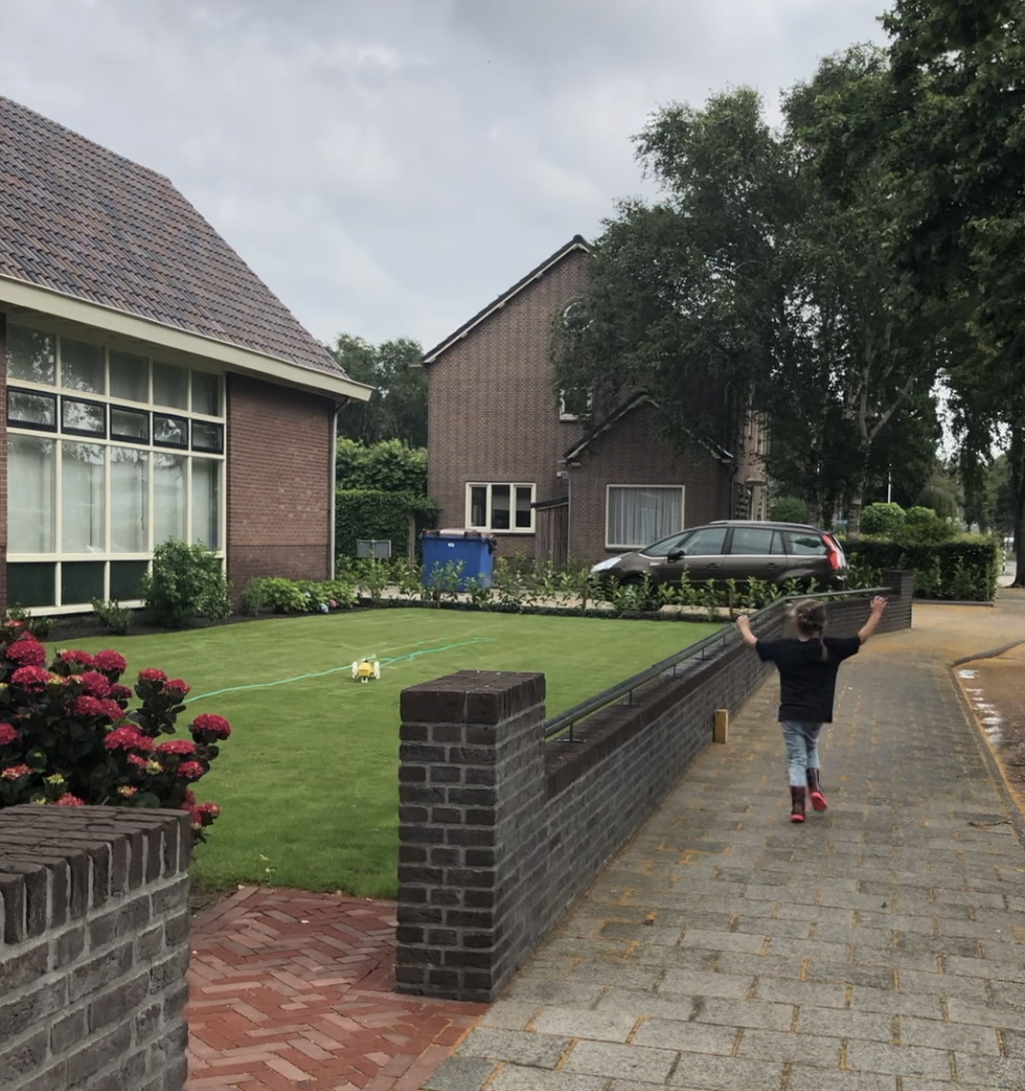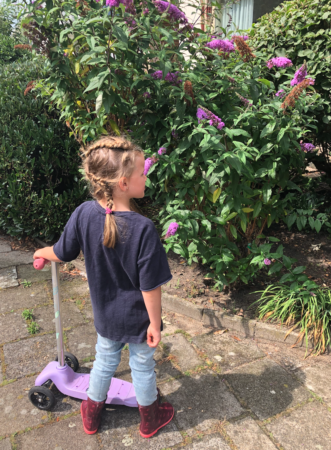 Pippa en ik gingen even lekker met z’n tweetjes op pad. Heerlijk zo’n uitje voor 2 en alle aandacht voor elkaar. Alle 3 onze kinderen genieten zichtbaar van dat soort dingen. Pippa is gek op bioscoopbezoekjes en nu dat weer mag maakten we daar vanmiddag graag gebruik. Om kwart over drie vertrokken we samen (ik lopend en zij op de step) richting de bioscoop in Lisse. Op stap met Pippa voelt altijd alsof je op safari bent, want ze ontdekt in iedere struik, bloem of stukje aarde wel beestjes. Vanmiddag stonden we een minuut of tien naar een bijtje te kijken die druk bezig was nectar te verzamelen in de vlinderstruik van de buren op de hoek. Daarna hadden we de grootste lol met en in een watersproeier in de tuin bij de kerk, kroop Pippa door een spiraalvormig fietsenrek en als diepte- en tegelijkertijd hoogtepunt organiseerden we nog een begrafenisje voor een dood bijtje die we vonden op de stoep. Never a dull moment met Pippa & La Mama….!