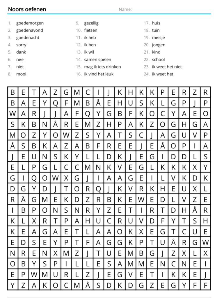 Ik heb net je blog ontdekt en erg geïnteresseerd in jullie emigratie. Erg leuk om te lezen. Alles qua leven in het moment, weekenden vrij en als een van de weinige om ons heen van het spontane afspreken zijn, de Growth Mindset (wat erg goed bij onze oudste zou passen, dyslexietest binnenkort 🙄) , het Noorse/Internationale schoolsysteem. Het is zo thuiskomen en zo wat bij ons past! Heerlijk om te lezen. Ik ga je volgen. Op dit moment ben ik ook Noors aan het oefenen. Want we dreamen het wel, nu nog bedenken hoe we het gaan doen haha. Mag ik vragen waar de woordzoeker puzzel vandaan komt?