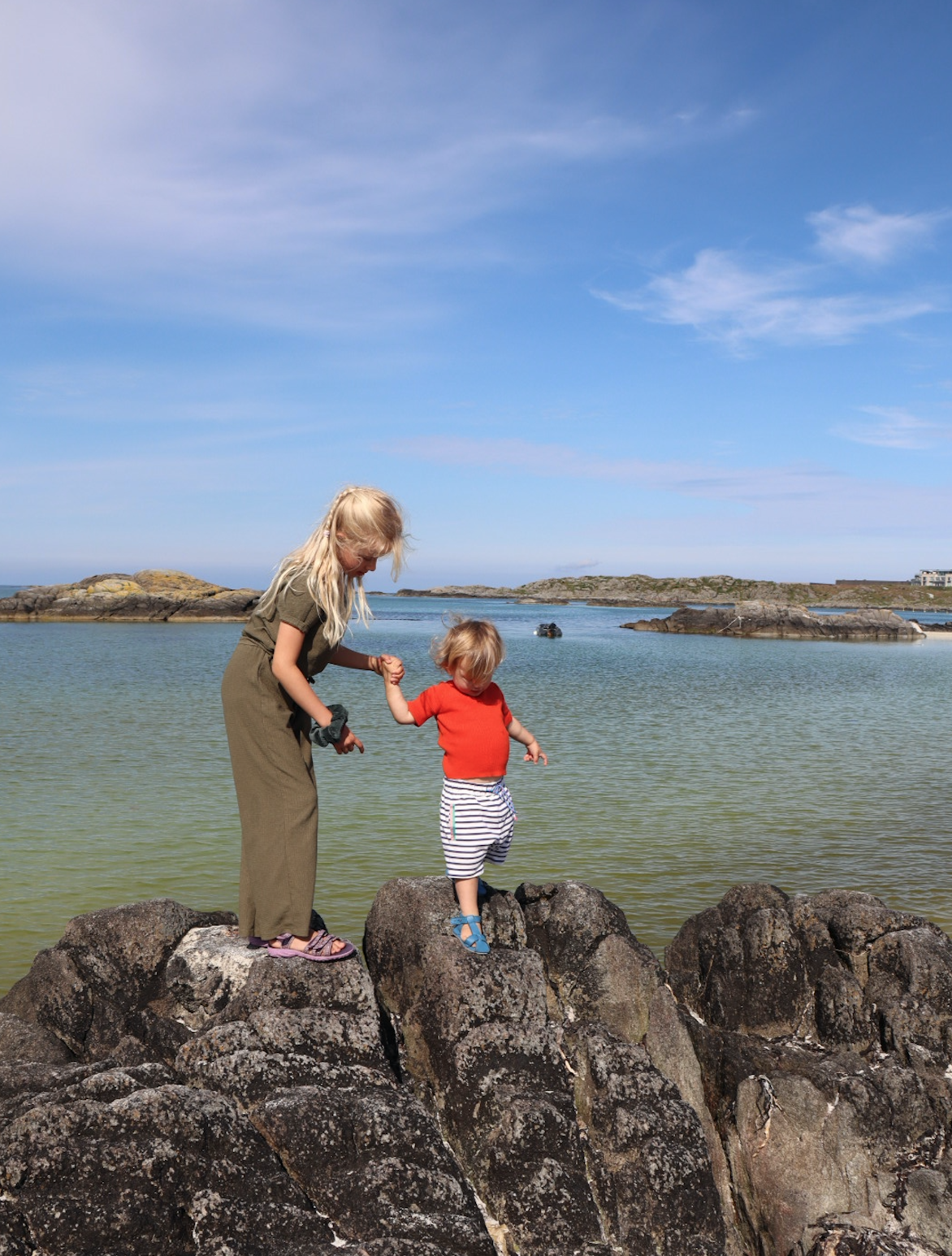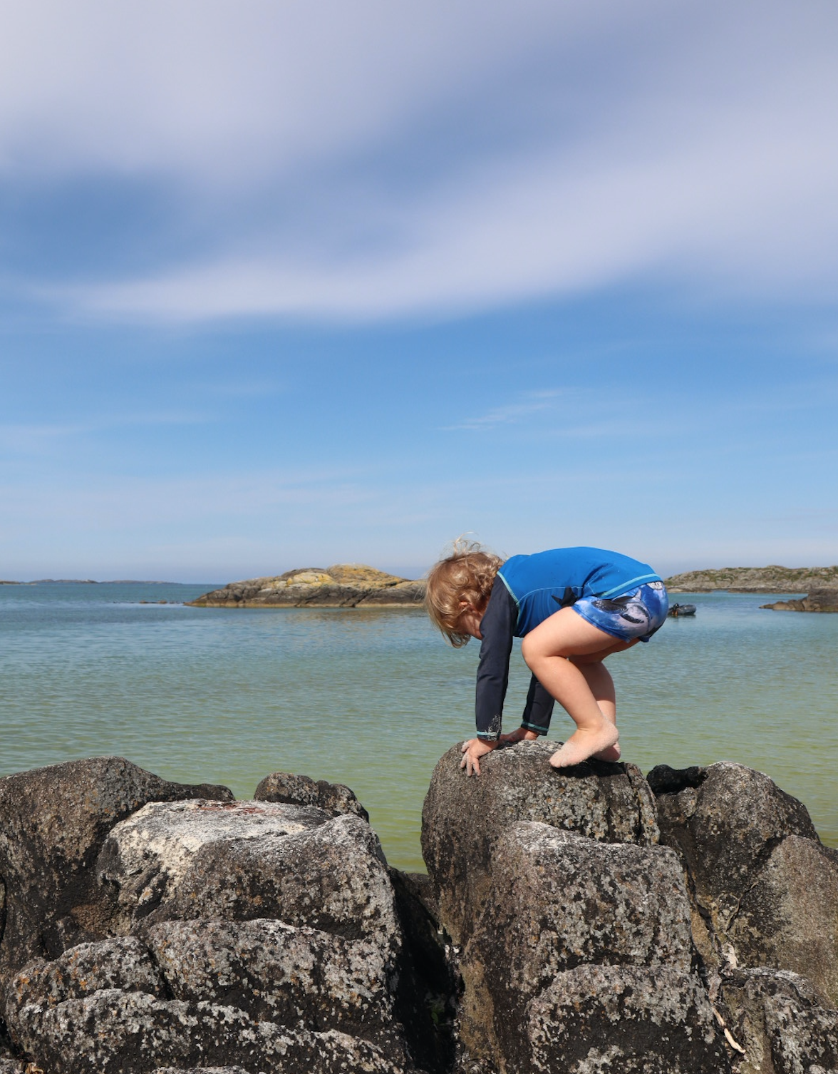 Thaddeus en ik letten heel scherp op de gevoelens van de kinderen. Bij allebei de meiden komen deze op een compleet andere manier tot uiting. Dat kan in de vorm van woorden, houding en daden zijn en dat is niet altijd makkelijk te spotten. We proberen Jools en Pippa altijd het gevoel te geven dat al hun gevoelens er mogen zijn en dat wij er voor ze zijn als ze erover willen praten. Ze worden er steeds beter in om aan te geven wat ze nodig hebben. Bijvoorbeeld door te zeggen dat ze even tijd voor zichzelf nodig hebben. Jools gaat regelmatig al in haar eentje beneden naar de ontbijtzaal hier in het hotel (haha jaaaa we zitten nog steeds in een hotelkamer met z’n vijfjes), zodat ze heerlijk rustig een bakje cornflakes kan eten met uitzicht op het water en de boten. Pippa is juist een paar keer op de hotelkamer gebleven om te snoozen in het grote bed, terwijl wij met z’n allen naar de ontbijtzaal gingen. Allebei de meiden vertelden dat ze daar zo van genoten hadden. Wanneer we op avontuur in de natuur gaan pakken ze ook dat soort momentjes mee: lekker alleen klimmen over de rotsen of gewoon zitten in de branding en staren over het water. Die rust en ruimte helpt dan zo ontzettend mee om alle gevoelens een plekje te geven en het overzicht te pakken. We zien op die momenten heel andere kinderen dan tijdens de momenten dat we te lang met z’n vijfjes op de hotelkamer zitten… Best logisch ook!