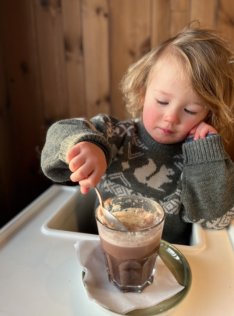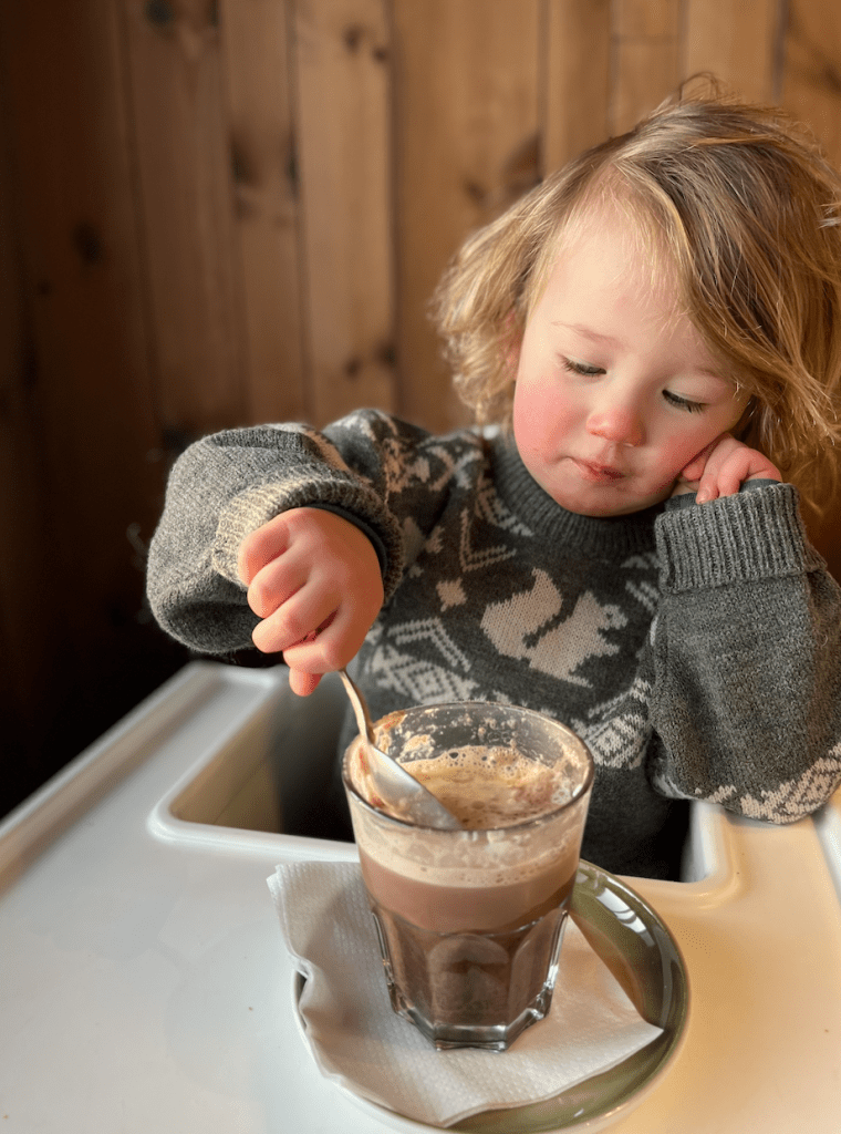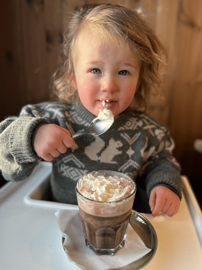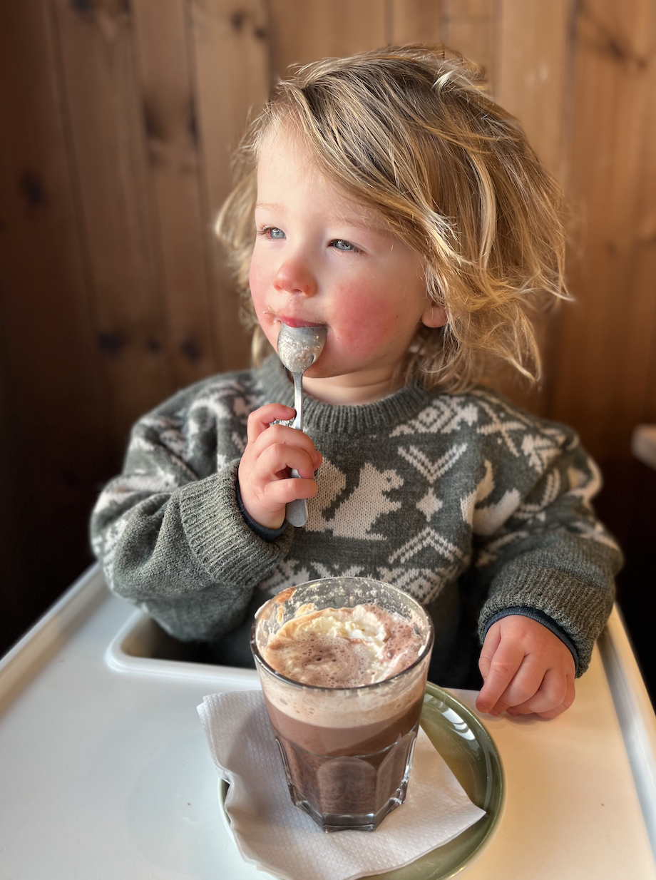 De berg op is niet zo’n groot probleem (wel goed klemmen die peuter in de skilift), maar dan komt de vraag: HOE ga je op een veilig manier naar beneden? Voor de meisjes was de oplossing om skiles te volgen, zodat ze alle belangrijke skills konden leren. Op de eerste dag maakten ze al de afdaling de hele berg af! Zo knap! Voor Sol lag dat iets anders. Meneertje Koekpeertje zit in de ‘ik-wil-alleen-maar-bij-mama-zijn’ fase en besloot absoluut niet naar de skileraar om te kijken. Huilend klampte hij zich aan mijn benen vast en dat betekende het einde van de skiles. Gelukkig konden we de geboekte uren voor hem doorschuiven naar Jools & Pippa. Die waren daar heel blij mee. Sol vond het wel fantastisch om samen met zijn papa en mama ontelbaar keer de kinderpiste af te racen, dus daar vermaakten wij ons prima. Warme choco in het restaurant bovenop de berg vond Sol ook een feestje. Om en om brachten Thaddeus en ik tijd door met Solliebollie, wat ons de gelegenheid gaf om zelf te snowboarden en te skiën.