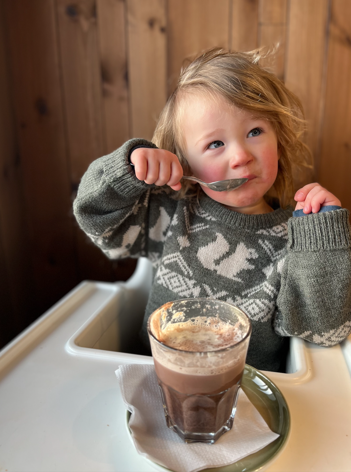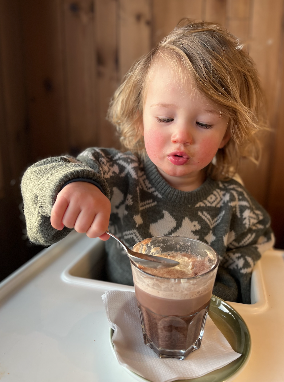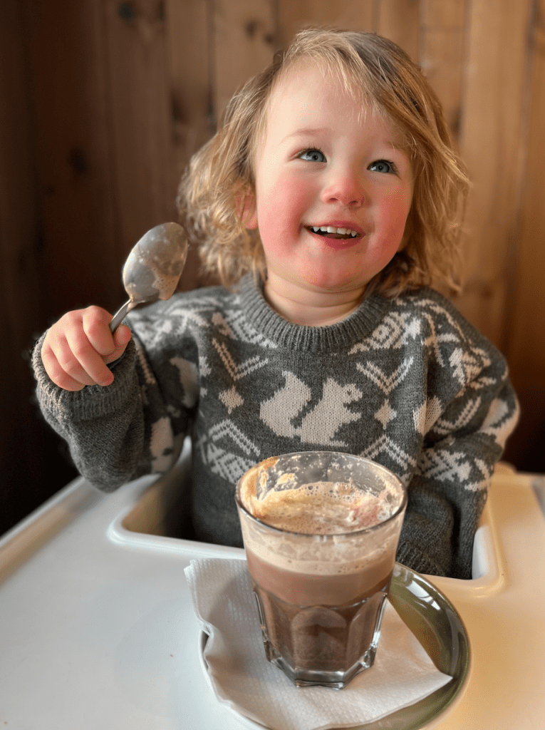 De berg op is niet zo’n groot probleem (wel goed klemmen die peuter in de skilift), maar dan komt de vraag: HOE ga je op een veilig manier naar beneden? Voor de meisjes was de oplossing om skiles te volgen, zodat ze alle belangrijke skills konden leren. Op de eerste dag maakten ze al de afdaling de hele berg af! Zo knap! Voor Sol lag dat iets anders. Meneertje Koekpeertje zit in de ‘ik-wil-alleen-maar-bij-mama-zijn’ fase en besloot absoluut niet naar de skileraar om te kijken. Huilend klampte hij zich aan mijn benen vast en dat betekende het einde van de skiles. Gelukkig konden we de geboekte uren voor hem doorschuiven naar Jools & Pippa. Die waren daar heel blij mee. Sol vond het wel fantastisch om samen met zijn papa en mama ontelbaar keer de kinderpiste af te racen, dus daar vermaakten wij ons prima. Warme choco in het restaurant bovenop de berg vond Sol ook een feestje. Om en om brachten Thaddeus en ik tijd door met Solliebollie, wat ons de gelegenheid gaf om zelf te snowboarden en te skiën.