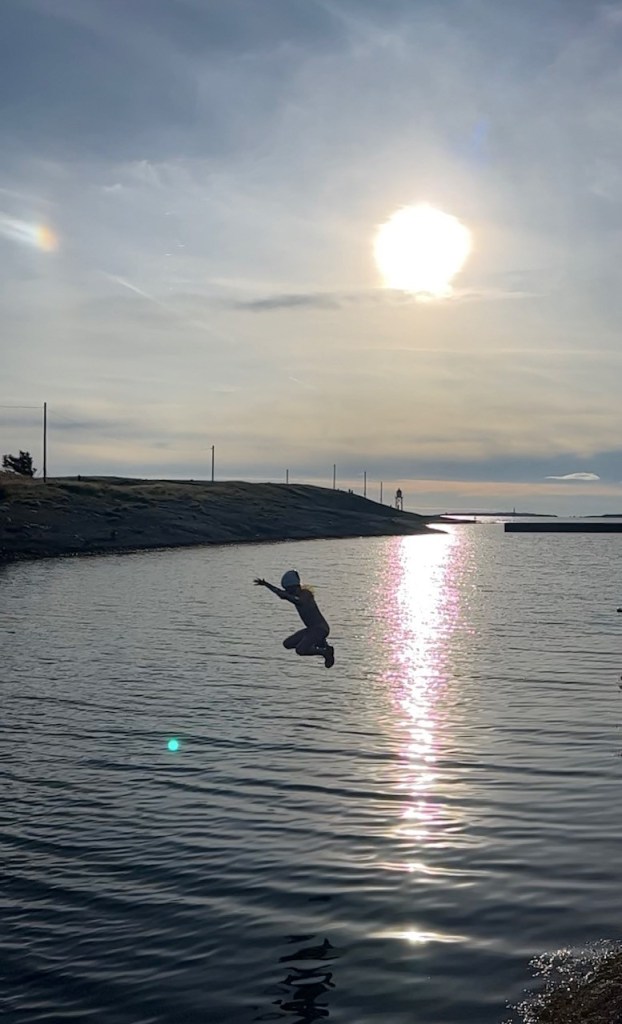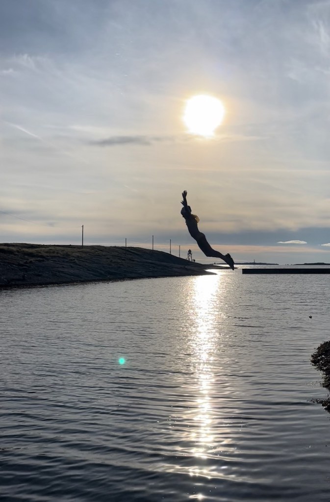 5 Springen van de duikplank in Kvalsvik – Pippa had al heel lang de wens om van de duikplank bij het strandje van Kvalsvik in de zee te springen, maar op het moment-suprème was het toch iets te spannend. Op 11 september 2022 had Pippa al haar moed bij elkaar verzameld en sprong ze!