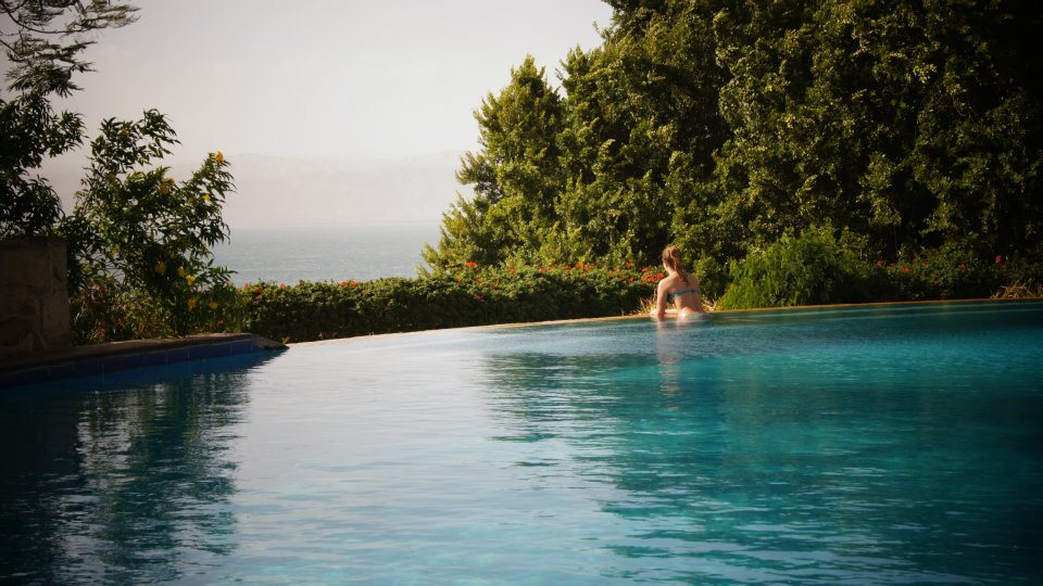 We zagen het al helemaal voor ons om kerst te vieren aan de Dode Zee. Deze voorpret was niet voor niets geweest, want wat was dat een heerlijke belevenis! Bij het Mövenpick hotel (en waarschijnlijk ook alle buren) kun je (tegen een kleine vergoeding) de hele dag gebruik maken van hun privé entree om de Dode Zee te betreden, evenals hun heerlijke zwembaden + ligbedden.